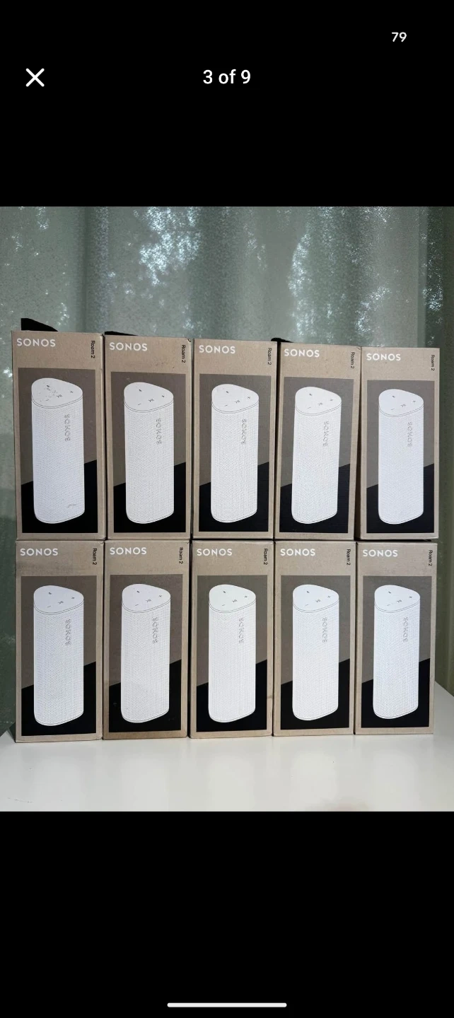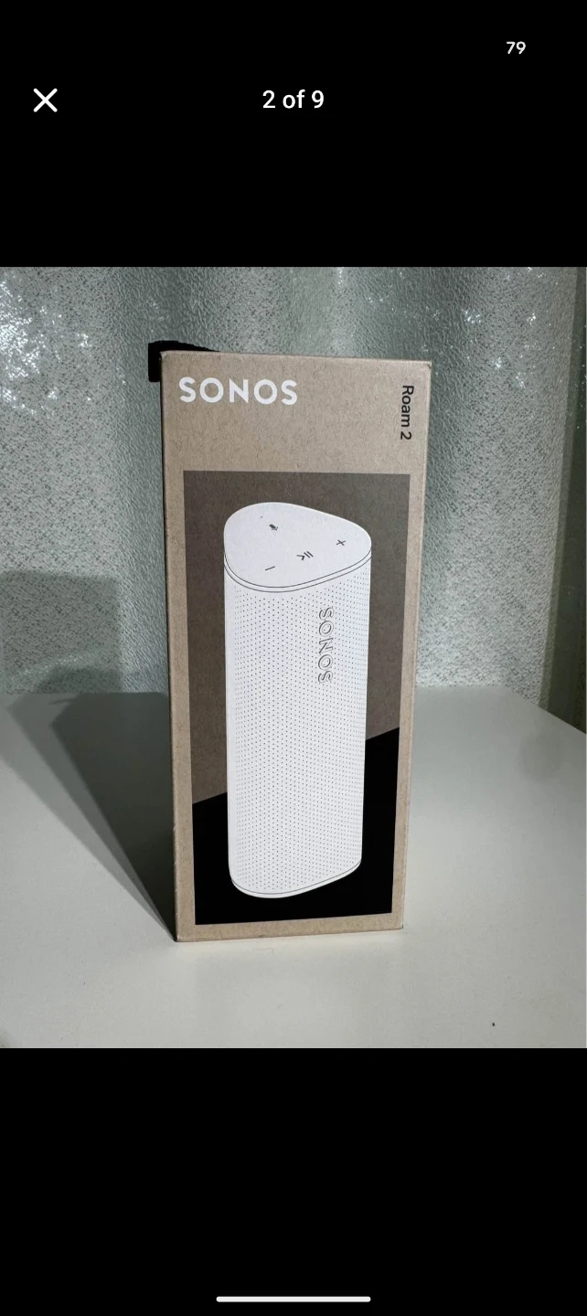 This is a Sonos Roam SL portable wireless speaker in white. It's compact and designed for easy transport. Connects wirelessly for audio streaming.