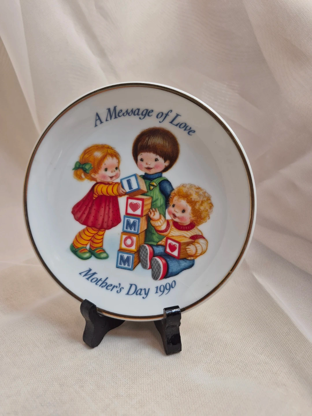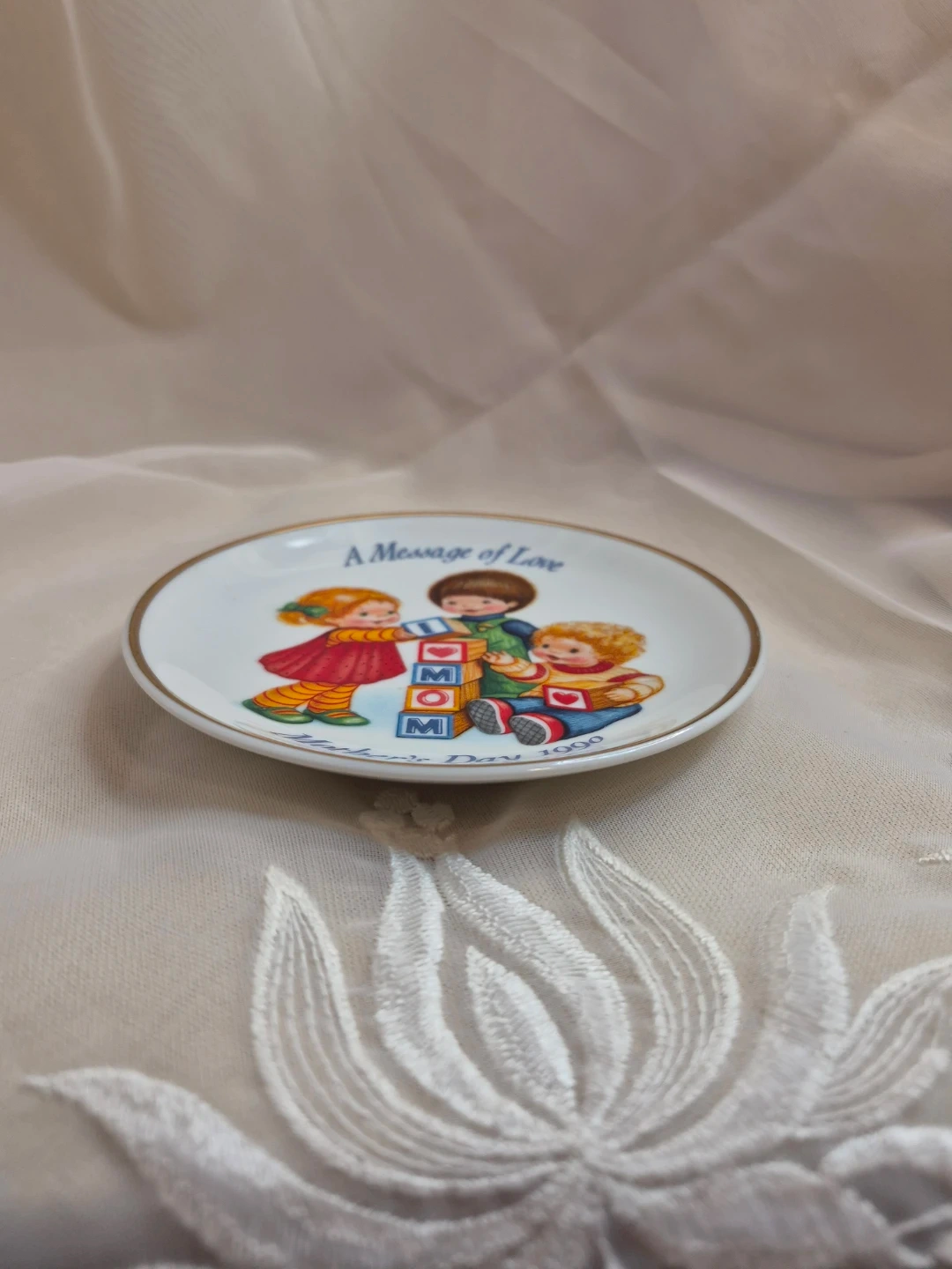 Collectible Avon 1990 Message of Love Mothers Day Decorative Porcelain Plate 5" Round no stand no Box Please See all pictures