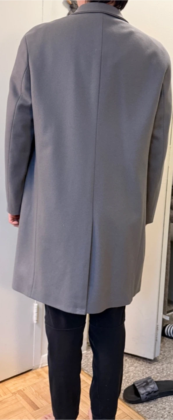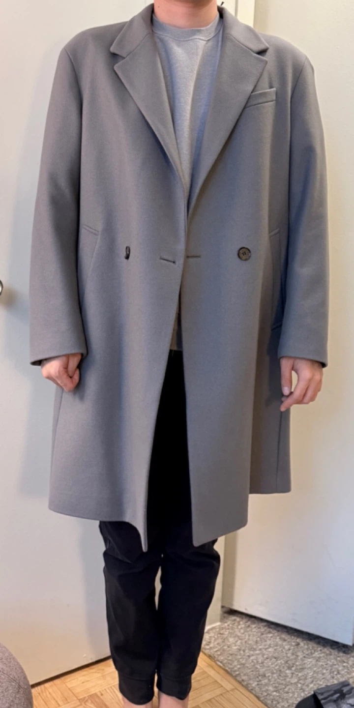 Selling a stylish grey/blue wool blend overcoat. M size. 181cm/70kg. Bought from Korea. wool 73% nylon 23% Cashmere 4%