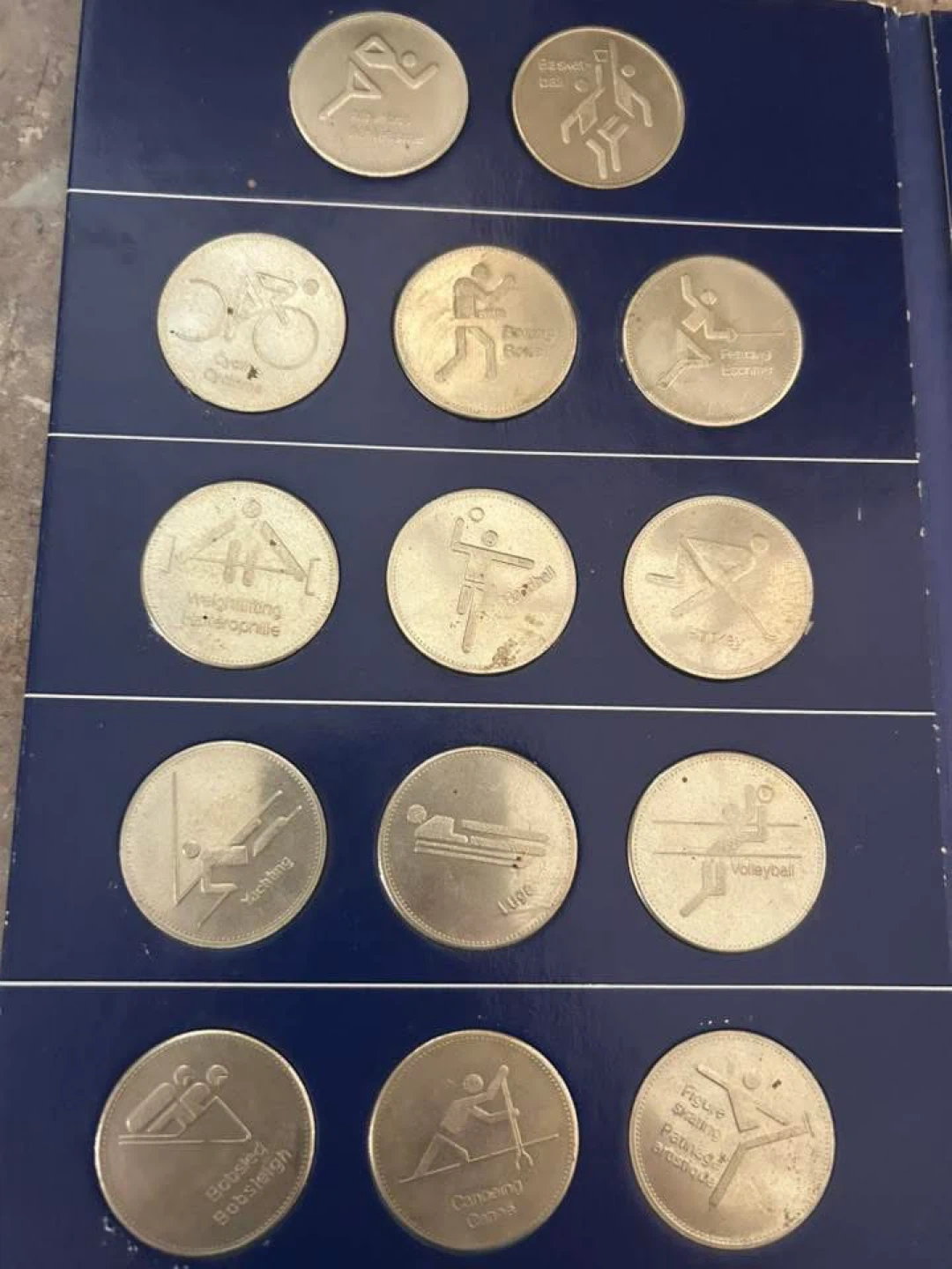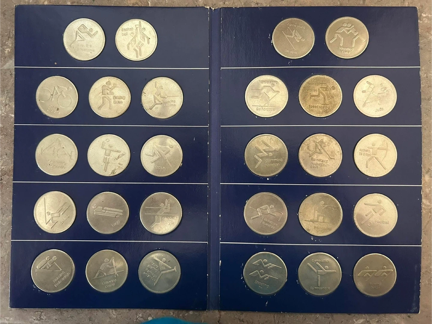 Selling a set of 1980 Olympic Trust Official Sports Coins. The set comes in its original blue holder. These coins commemorate the 1980 Olympics and feature various sports. A unique collectible for any sports or Olympic enthusiast!