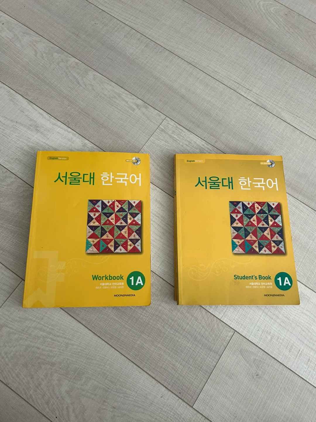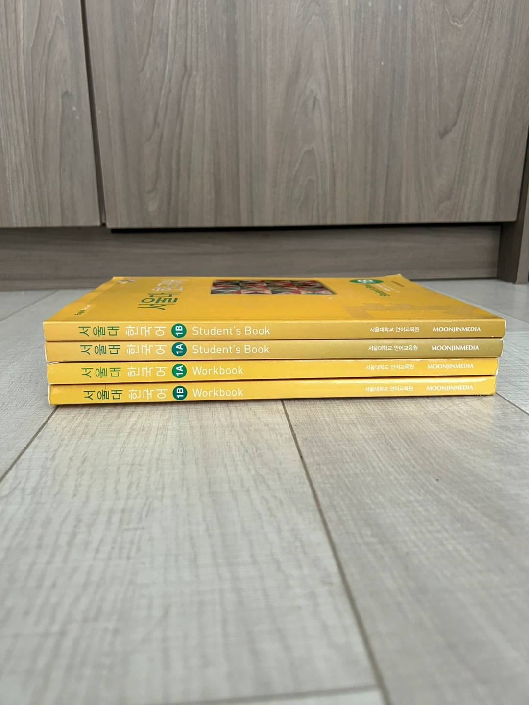 This is a set (4) of Korean language learning books which includes Student's Book 1A, Workbook 1A, Student’s Book 1B and Workbook 1B. They're designed for English speakers learning Korean. The set includes a total of 4 CDs (1 CD in each of the language books).