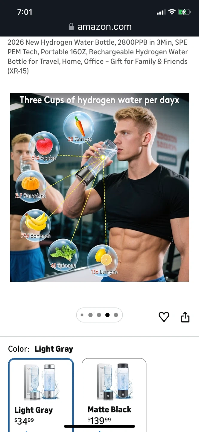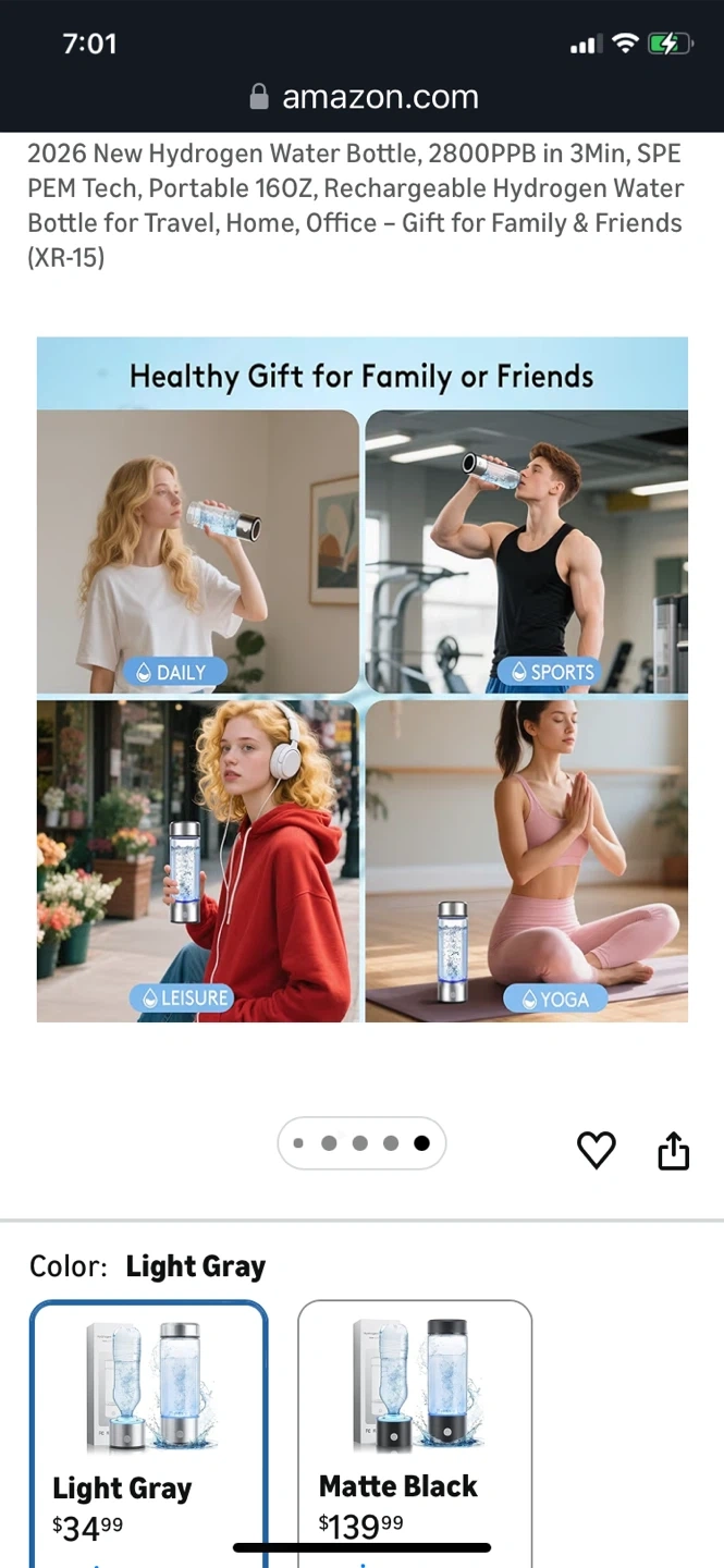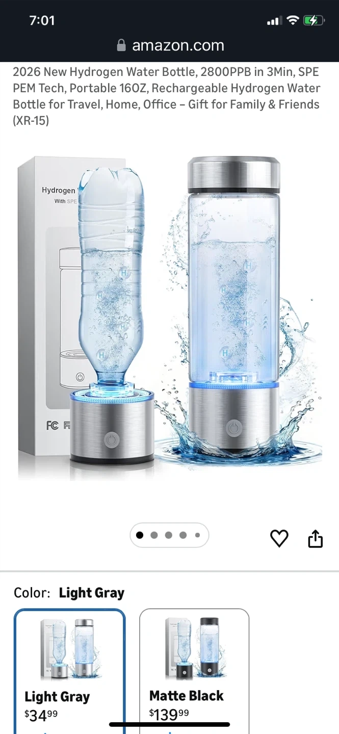Portable Hydrogen Water Bottle - Light Gray