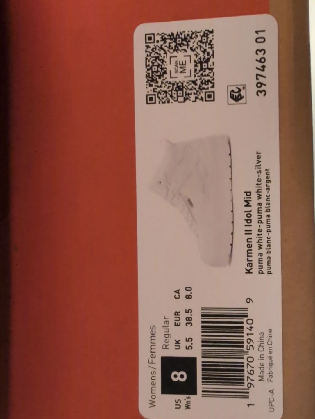 Puma Karmen II Idol Mid sneakers in white. Women's US size 8, UK 5.5, EUR 38.5. Made in China. Includes original box.