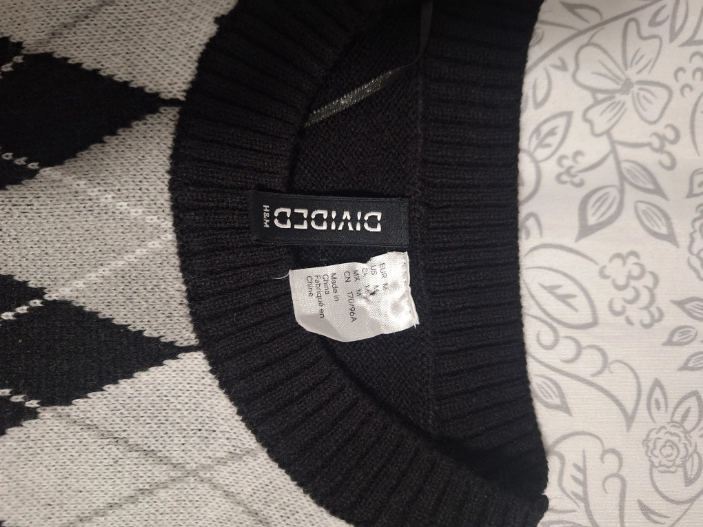 Selling a gently used H&M Divided sweater vest. It features a classic argyle pattern in black, grey, and white. Size is M.