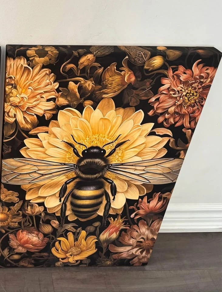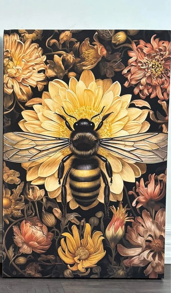 Beautiful floral bee print on canvas, framed onto a 23.6”x15.7”X1.5” wooden frame. Lightweight and ready to hang. Pick up in North Bowmanville near Northglen Blvd.