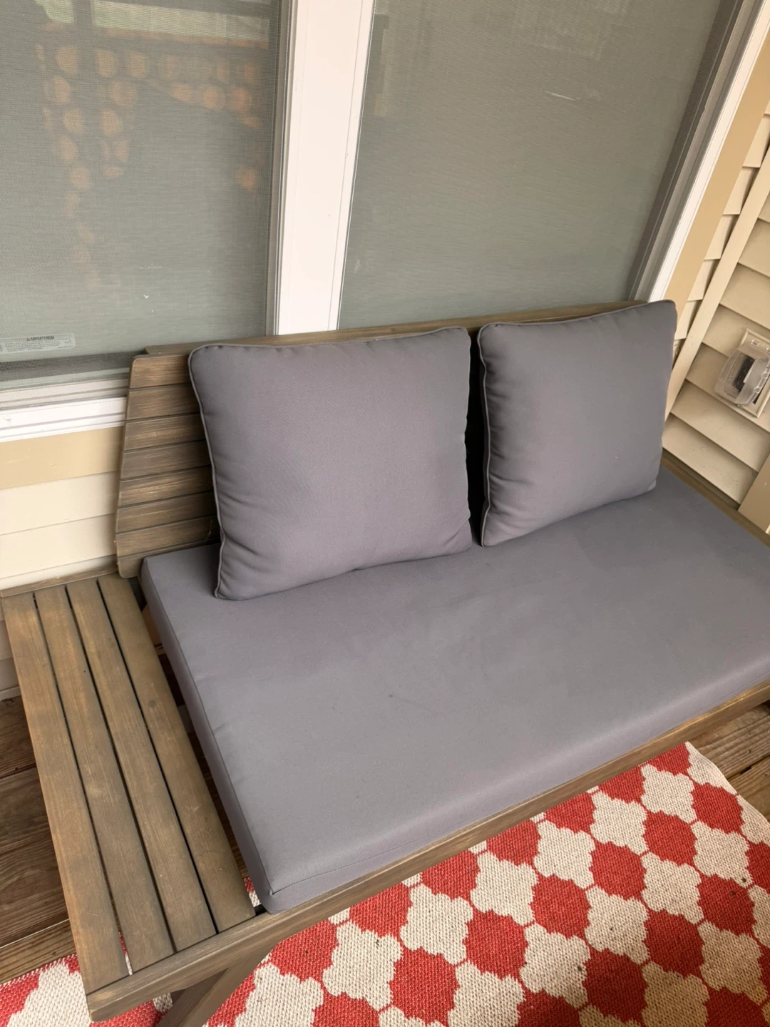 This outdoor wooden loveseat is the perfect addition to your balcony, terrace or backyard. A great place for your morning coffee and a book or your evening drink with a friend.