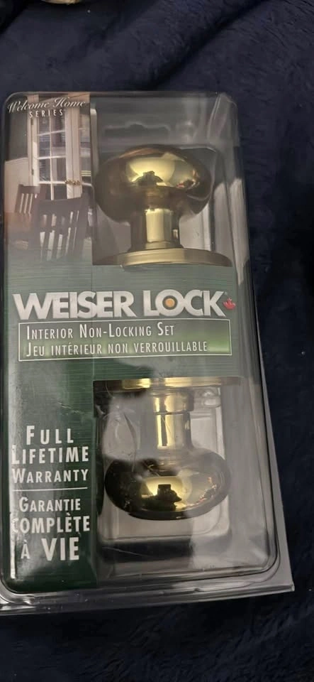 Selling 2 sets of door knobs. They do not have locks. I'm not sure if any parts are missing, but one set looks brand new. They are a gold-like color and are Weiser lock brand.