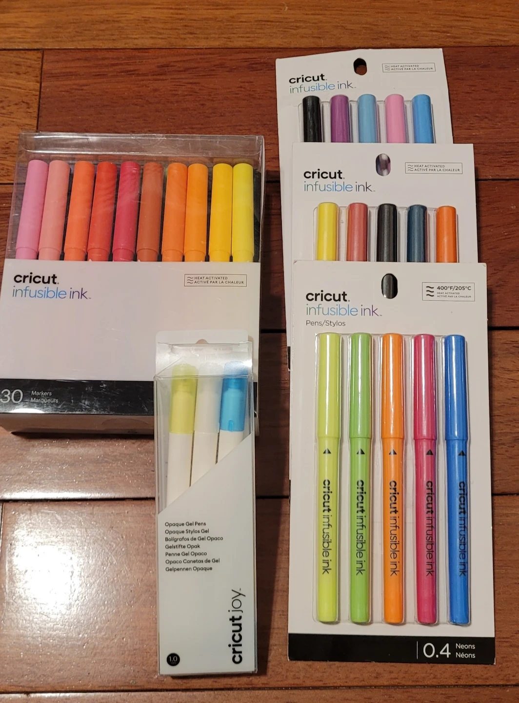 This bundle includes a Cricut Joy cutting machine, a variety of Cricut Infusible Ink markers, Opaque Gel Pens, and a set of essential crafting tools. Also included are two paper trimmers, one by Fiskars. It's a great starter kit for all your crafting projects!