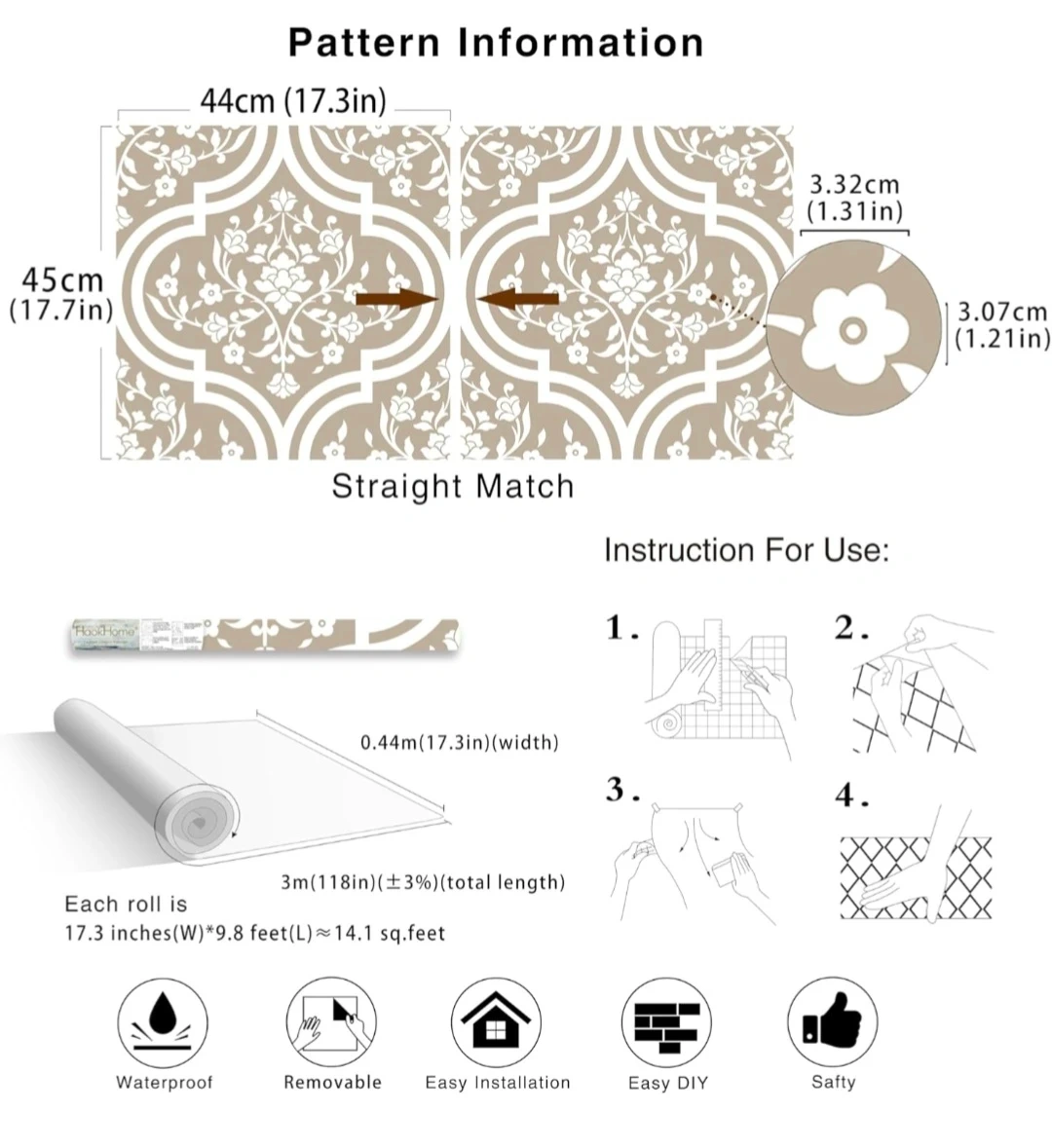 Add a touch of elegance to your space with this beautiful floral damask peel and stick wallpaper! New. It's perfect for adding a decorative touch to walls, stairs, or any smooth surface. 17.7"×118". Have multiple rolls available.