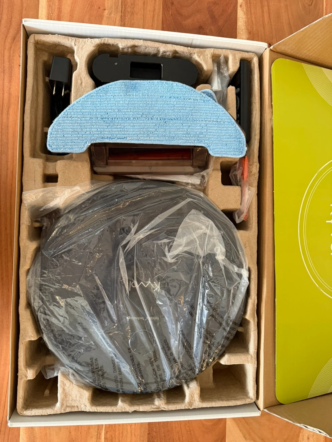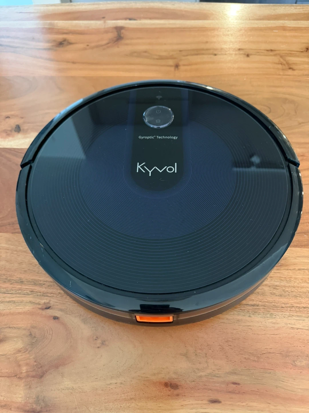 Kyvol Cybovac E31 robot vacuum cleaner. Includes charging base and remote. Features Gyroptic Technology for efficient cleaning. Super strong suction power! Used only a few times, original purchased for $350, includes a mop attachment and is in great condition.