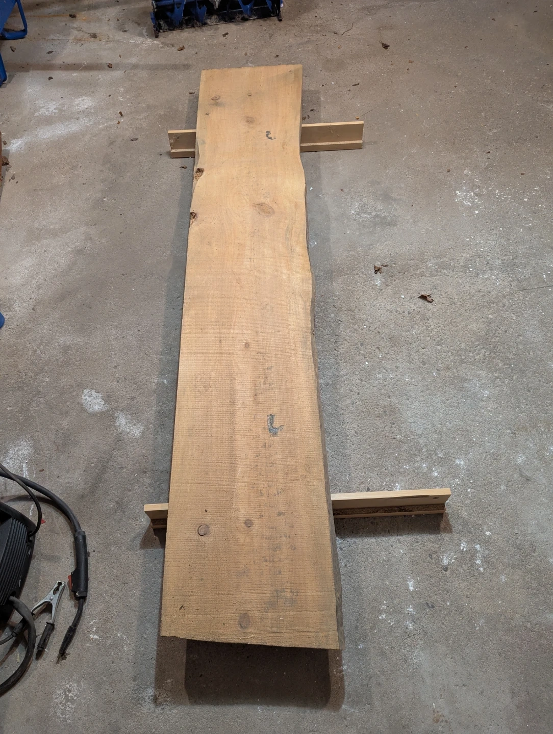 One large pine board, live edge on one side. The rest is mostly red oak, white oak, some ipe, some cedar, some maple & poplar.