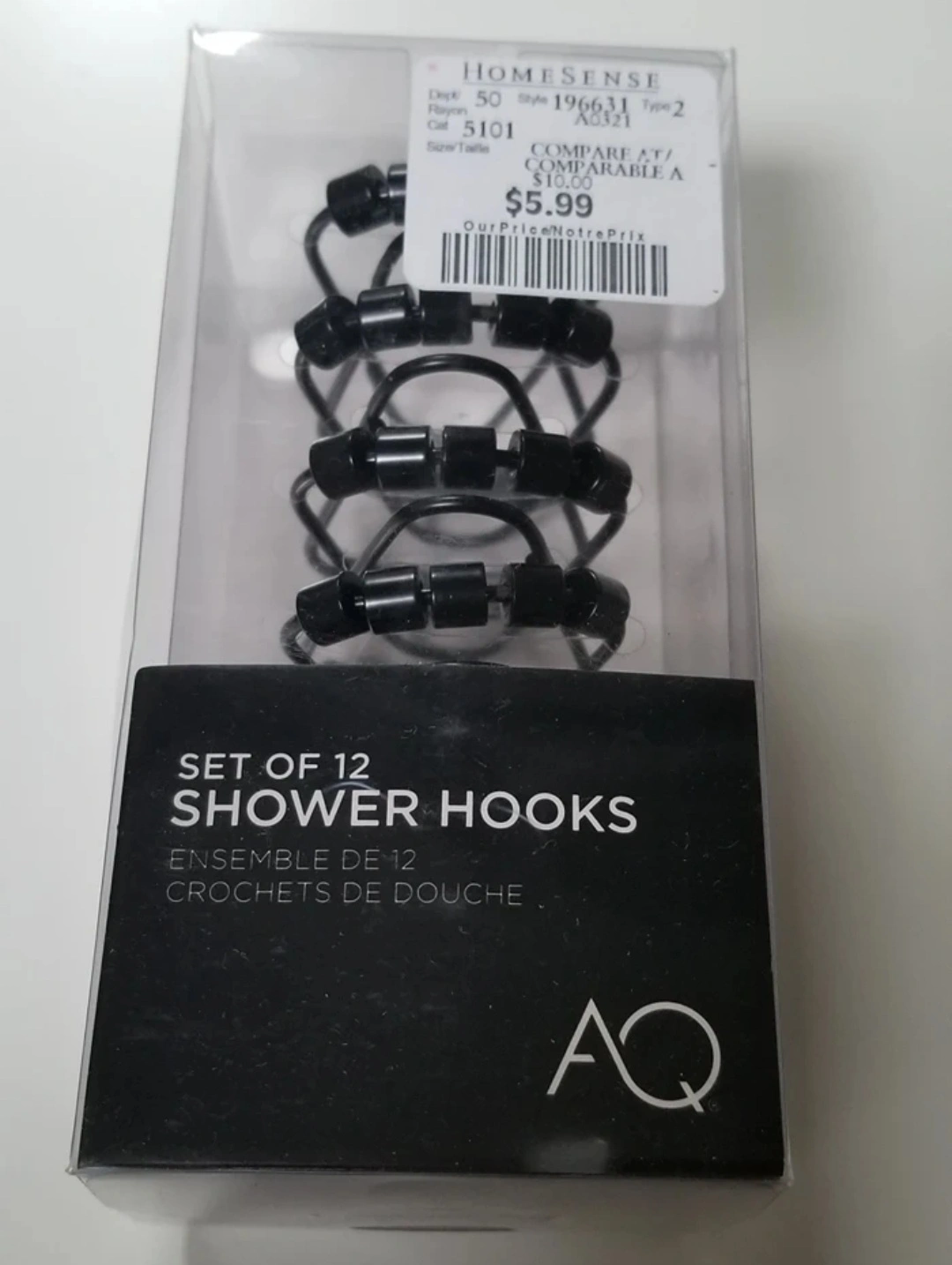 Modern Black Shower Hooks (12 pcs) – Brand New!