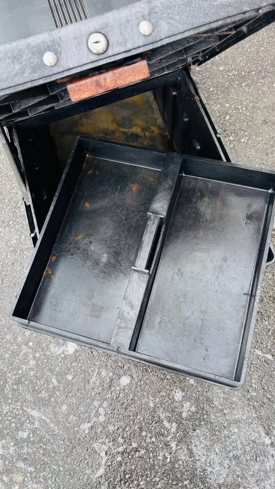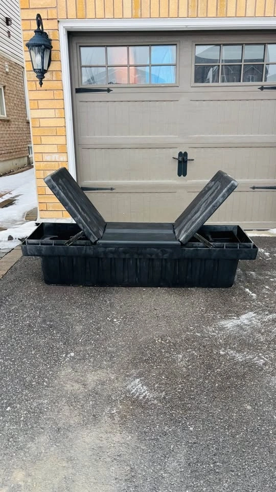 Extremely durable rigid heavy plastic construction. Measures 71” long on top and 59” long on the bottom. Includes the removable tool tray as seen in photos. Overall the box is in great shape. No cracks or holes or anything like that. The struts on both compartment doors work perfectly. The doors will stand open, and will close easily. There are locks on both compartment doors but I don’t have the key. Perhaps you could get a key made or rekey the locks if locking is important to you. This came from an estate and I don’t know what make/model of truck it was in. Should be a fairly universal fit. Check the measurements provided above with your truck bed. Pickup in Bowmanville.