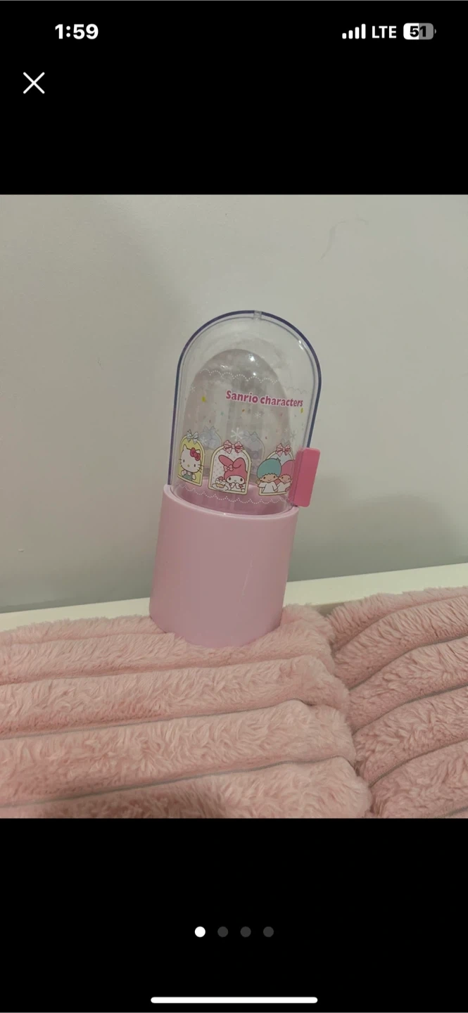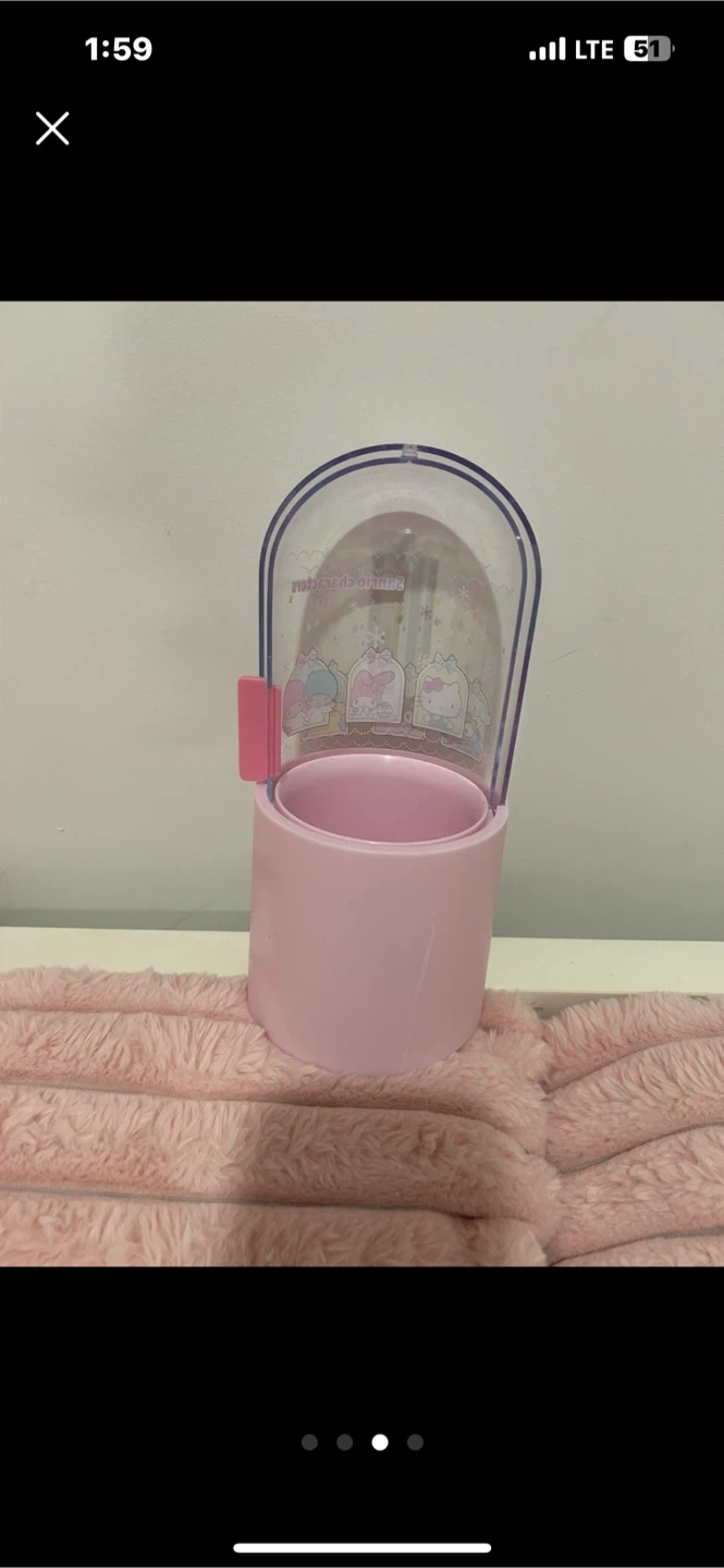 Selling a cute Sanrio characters container! It's in great condition and perfect for storing small items or using as a desk organizer. The container features adorable Sanrio characters like Hello Kitty and Little Twin Stars. It's a lovely pink colour!
