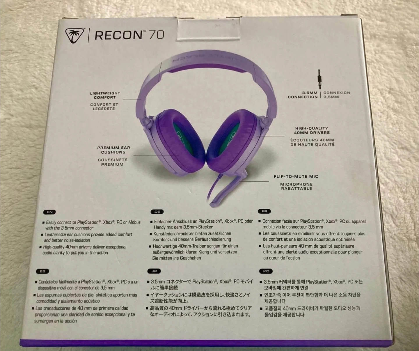 Get ready to elevate your gaming experience with these brand new Turtle Beach Recon 70 Multiplatform Gaming Headphones in lavender! No need to worry about compatibility; they work seamlessly with various platforms. Please see the specifications below: