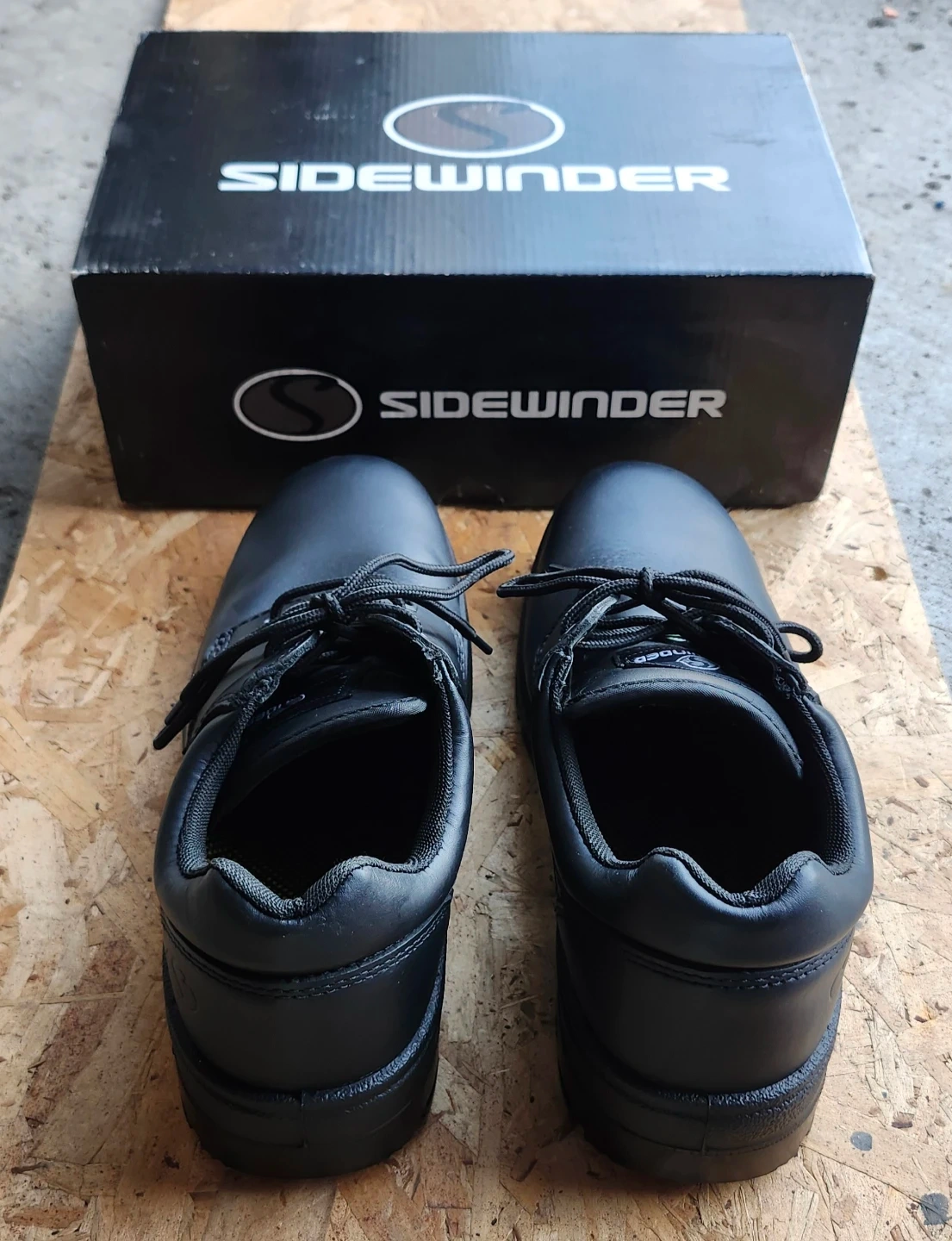 Step into safety with these Sidewinder black leather CSA-approved safety shoes, size 8.5 W designed to keep you protected on the job. These shoes have been used for a week but are in very good condition.
