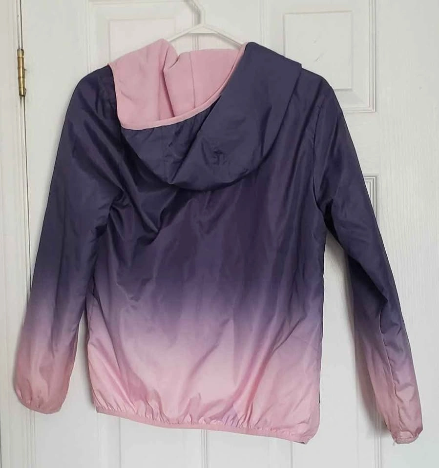 Girls Oshkosh spring rain coat jacket. Hooded and fleece lined with zipper pockets. Size 12. Cash only. If listing is up, it's available.