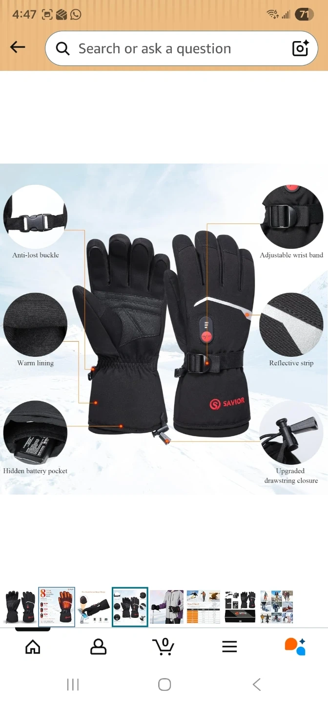 These are SAVIOR brand heated gloves for men, size large. They are suitable for skiing, hiking, and camping. Includes battery packs and charging accessories.