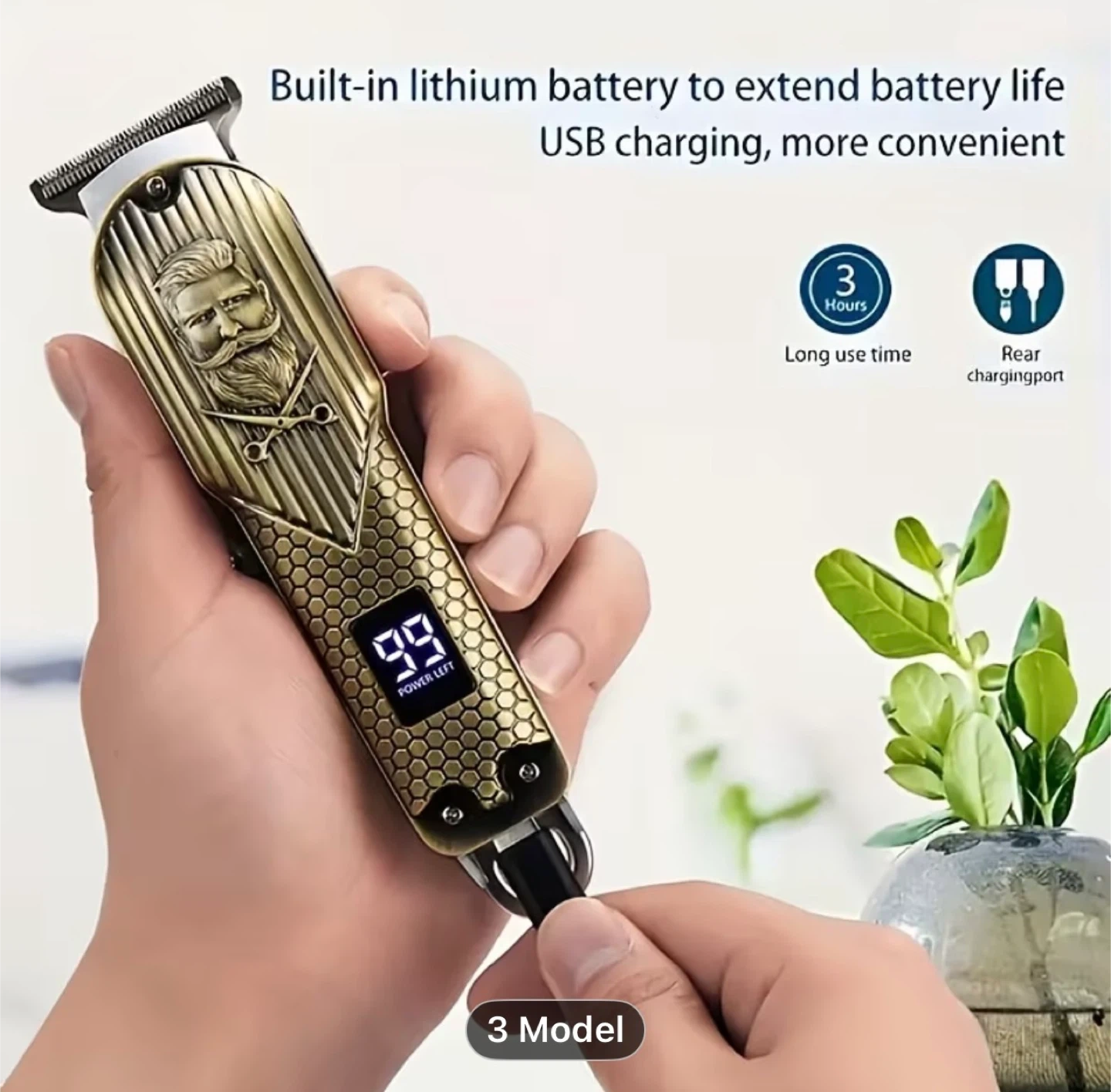 2pcs HIENA Men's Vintage Barber Pole USB- Beard & Mustache Trimmer Suitable for Home Use, USB- Trimmer, Ideal Gift for & Men