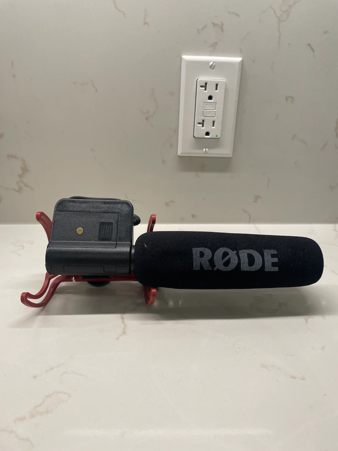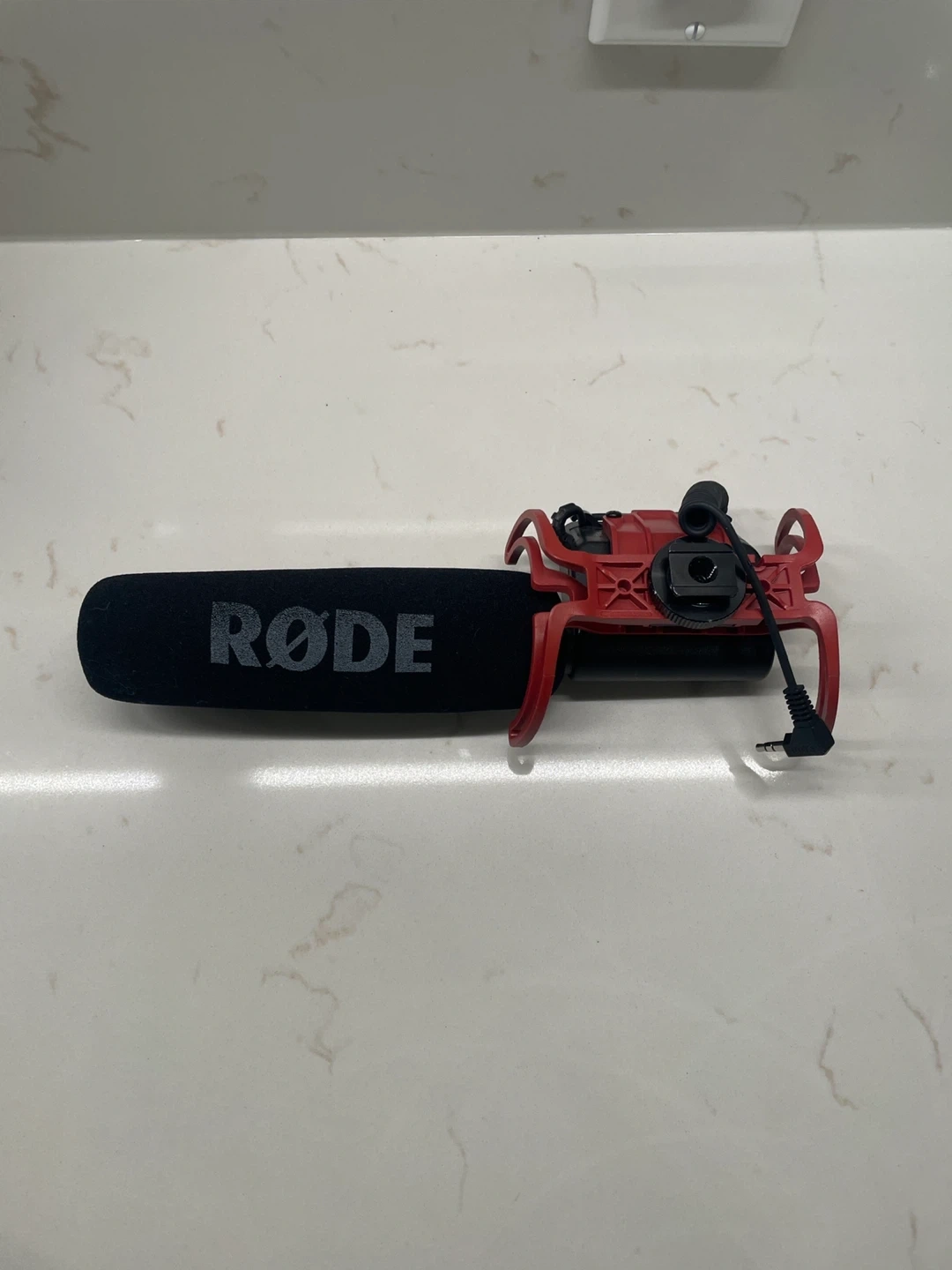 This is a Rode VideoMic microphone. It comes with a shock mount for stable audio recording. This microphone is great for capturing clear sound for your videos! Only used a few times.