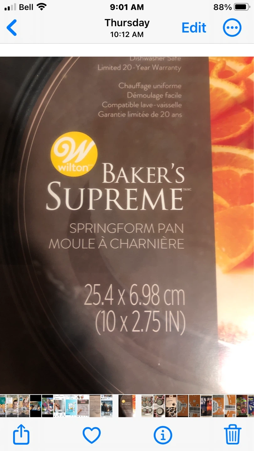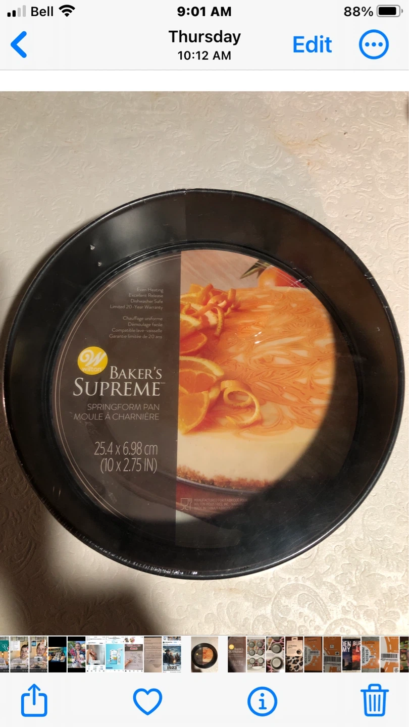I have a brand new Wilton Baker's Supreme Springform Pan for sale! It's 10 x 2.75 inches wide and offers even heating and excellent release. Plus, it's dishwasher safe for easy cleanup
