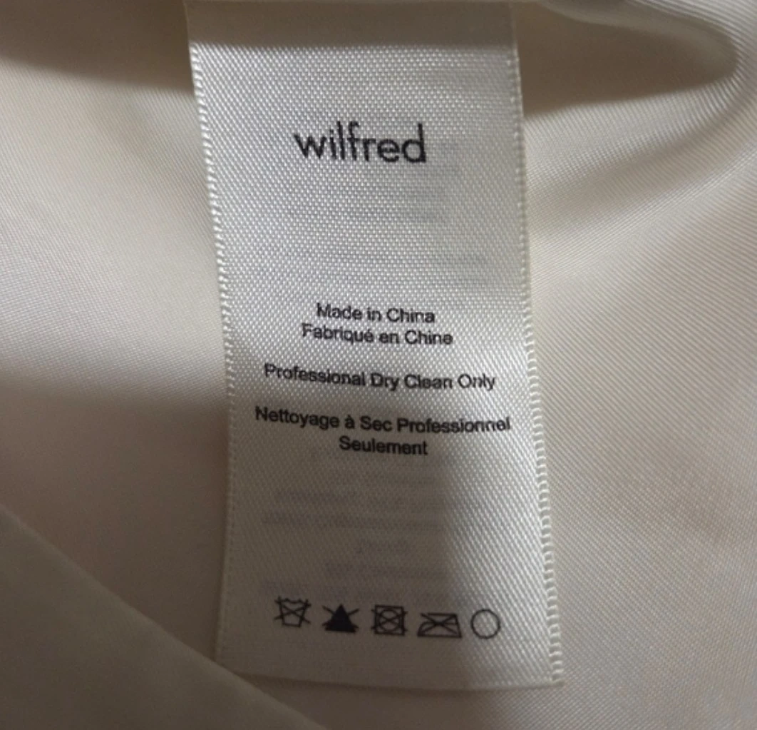 A stylish women's coat by Wilfred, featuring a grey Italian wool and cashmere blend fabric with a belted waist and button closure. Black trim around the coat adds a touch of class. The coat is designed for a modern look with a hood and a tailored fit. In great used condition. Some mild overall wear to the wool but still in really great condition.