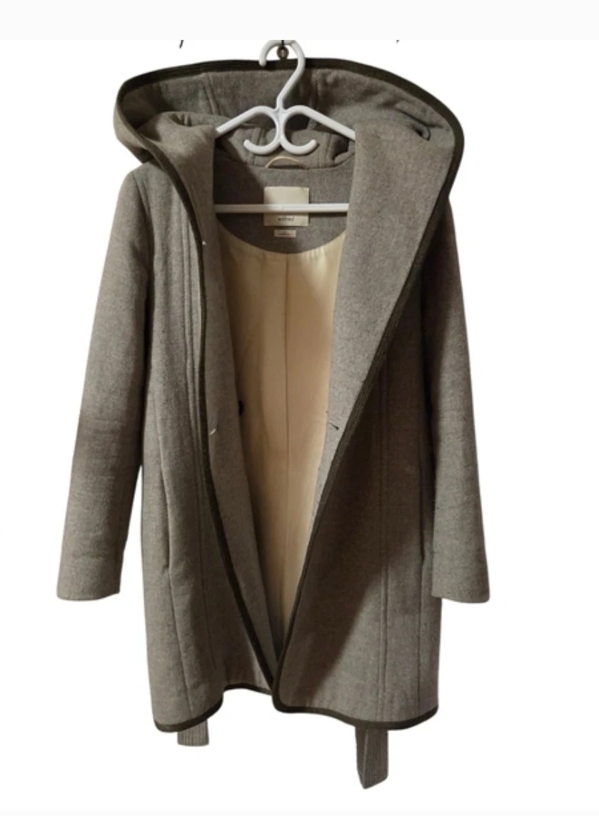 Aritzia Wilfred Grey Italian Wool Hooded Coat Size Small
