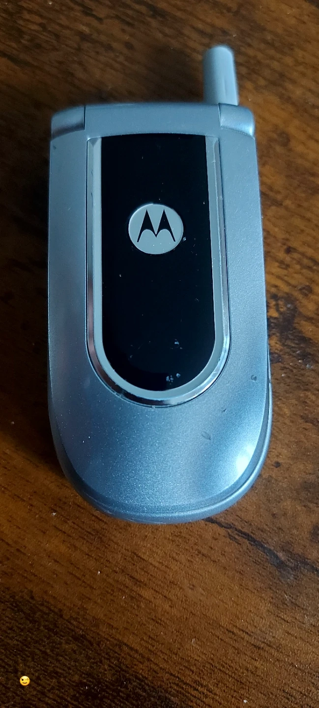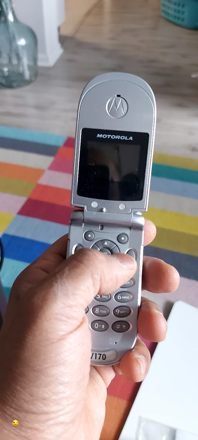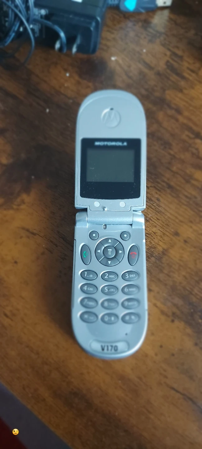 Vintage Silver Motorola V170 flip phone. It's a compact flip phone model. Great for basic communication needs!