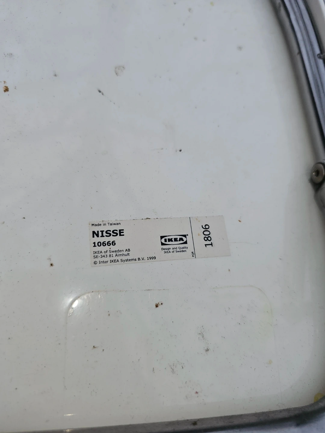 This is a white IKEA NISSE folding chair. This chair folds for easy storage.