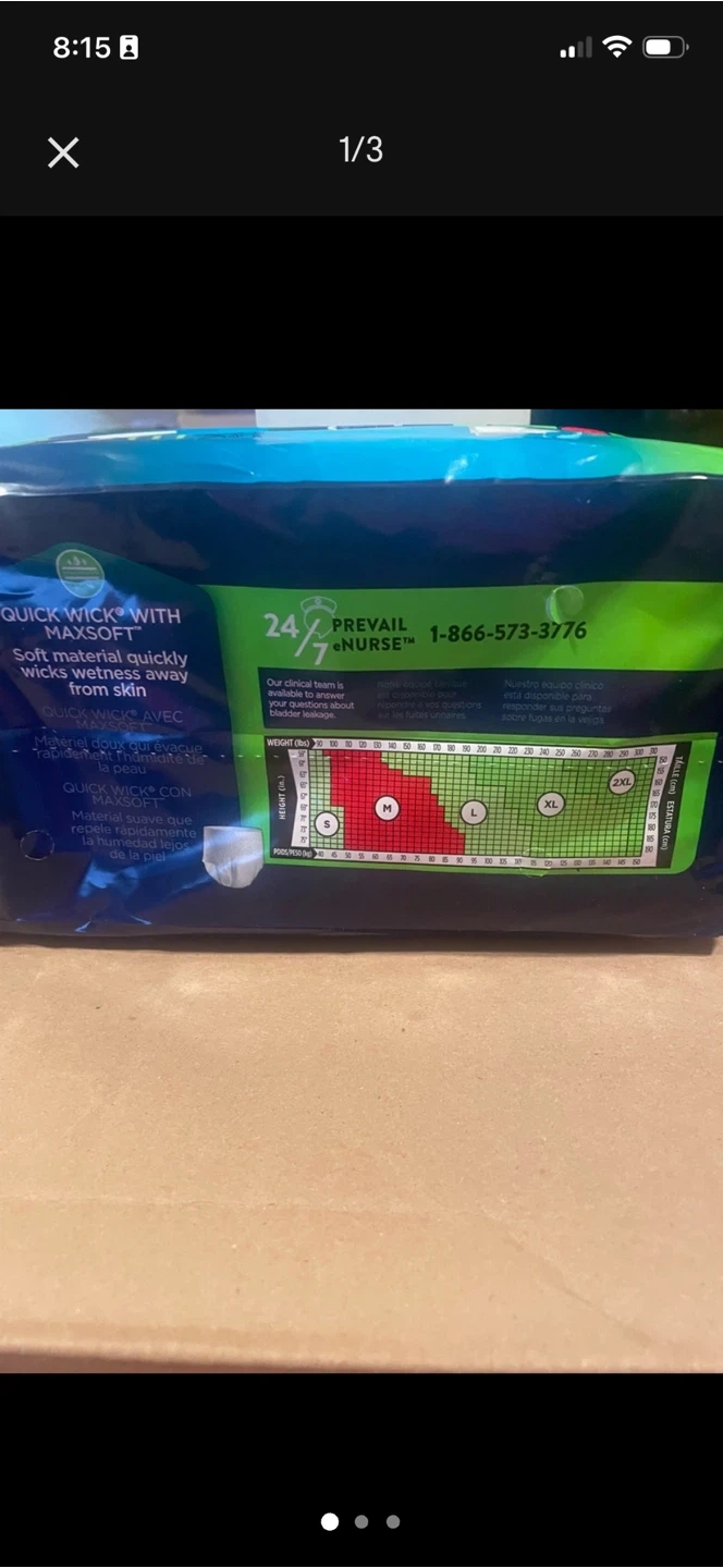 Prevail Per-Fit Daily Underwear in size medium. These have 360° breathable zones and odor guard protection. They come in a 20-count package and feature Quick Wick with MaxSoft technology.