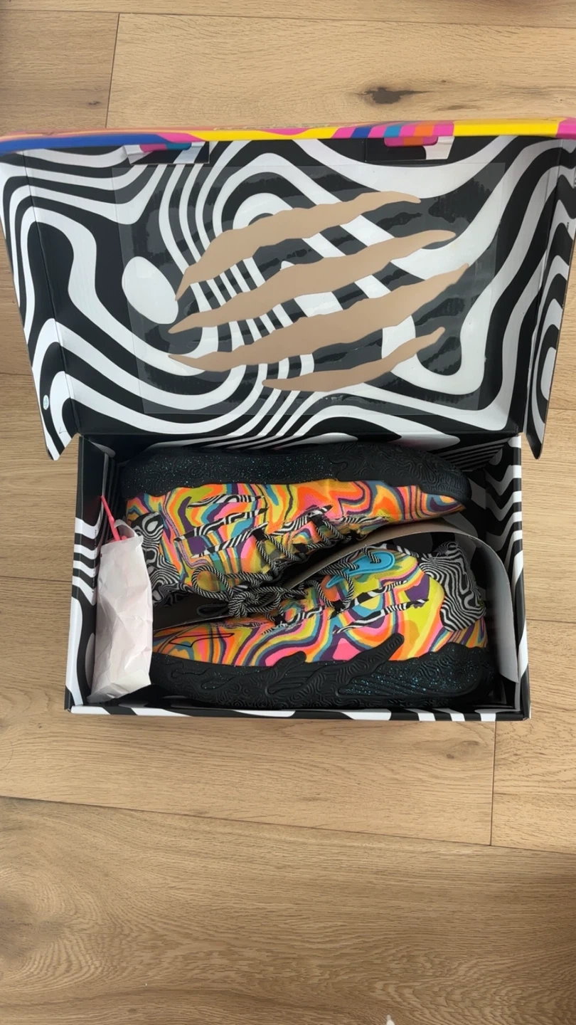 These Puma MB.03 basketball shoes are a collaboration with Dexter's Laboratory. They're a size 9 US for adults. The vibrant, multicoloured design is eye-catching! Never used.
