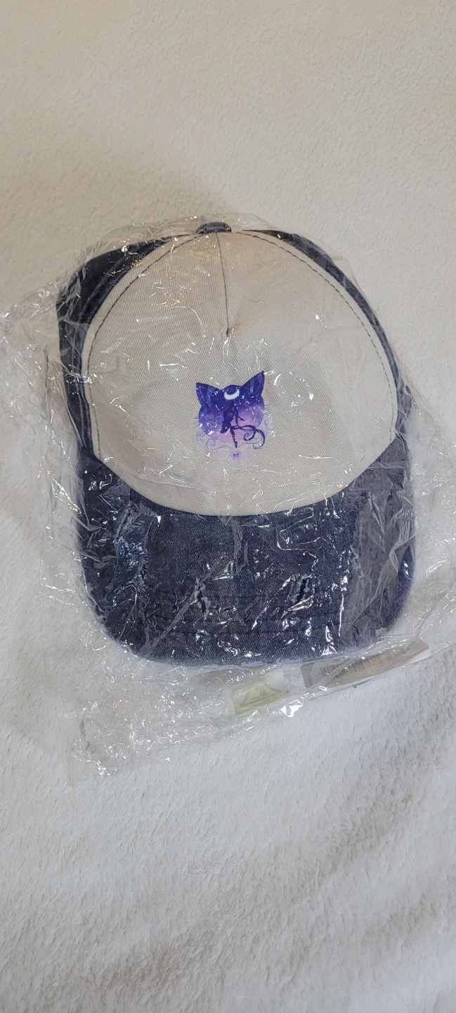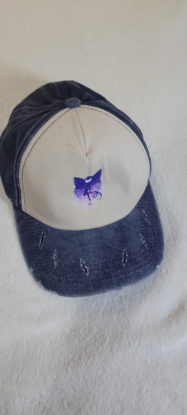 This hat features a distressed denim brim. It has a cute cat silhouette design with Sailor Moon anime theme. One size fits most.