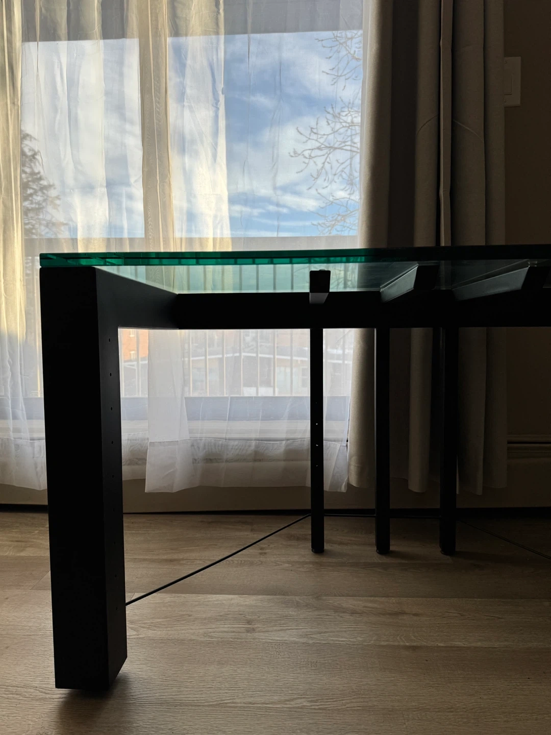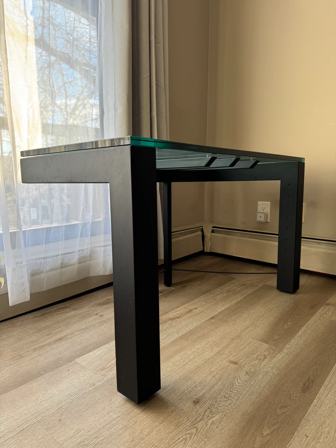 Coffee table: Modern Glass Top Desk with Black Metal Frame