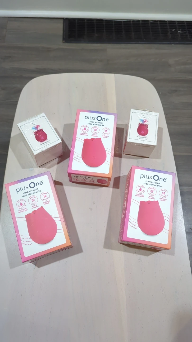 Plus One Rose Arouser / rose stimulators. Each device offers pulsing stimulation with 10 unique settings. Brand new in box, never been open. Comes with usb charging cable & manual.