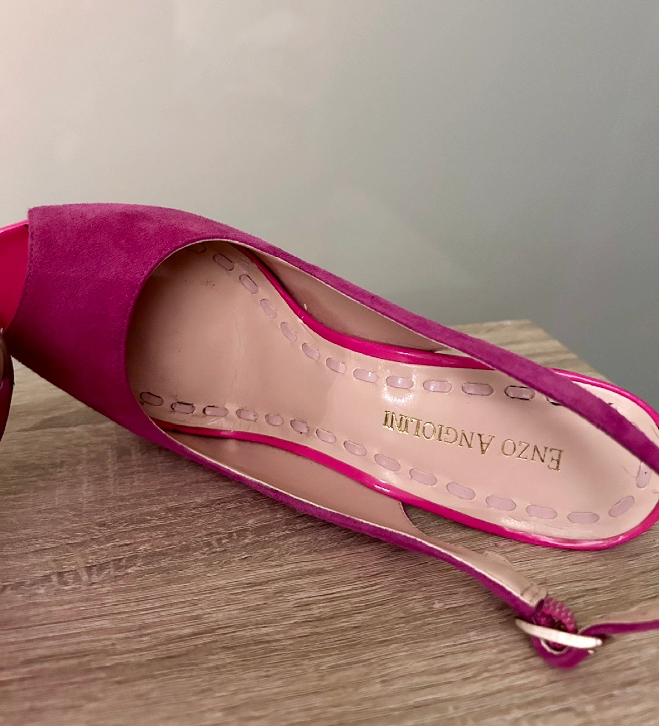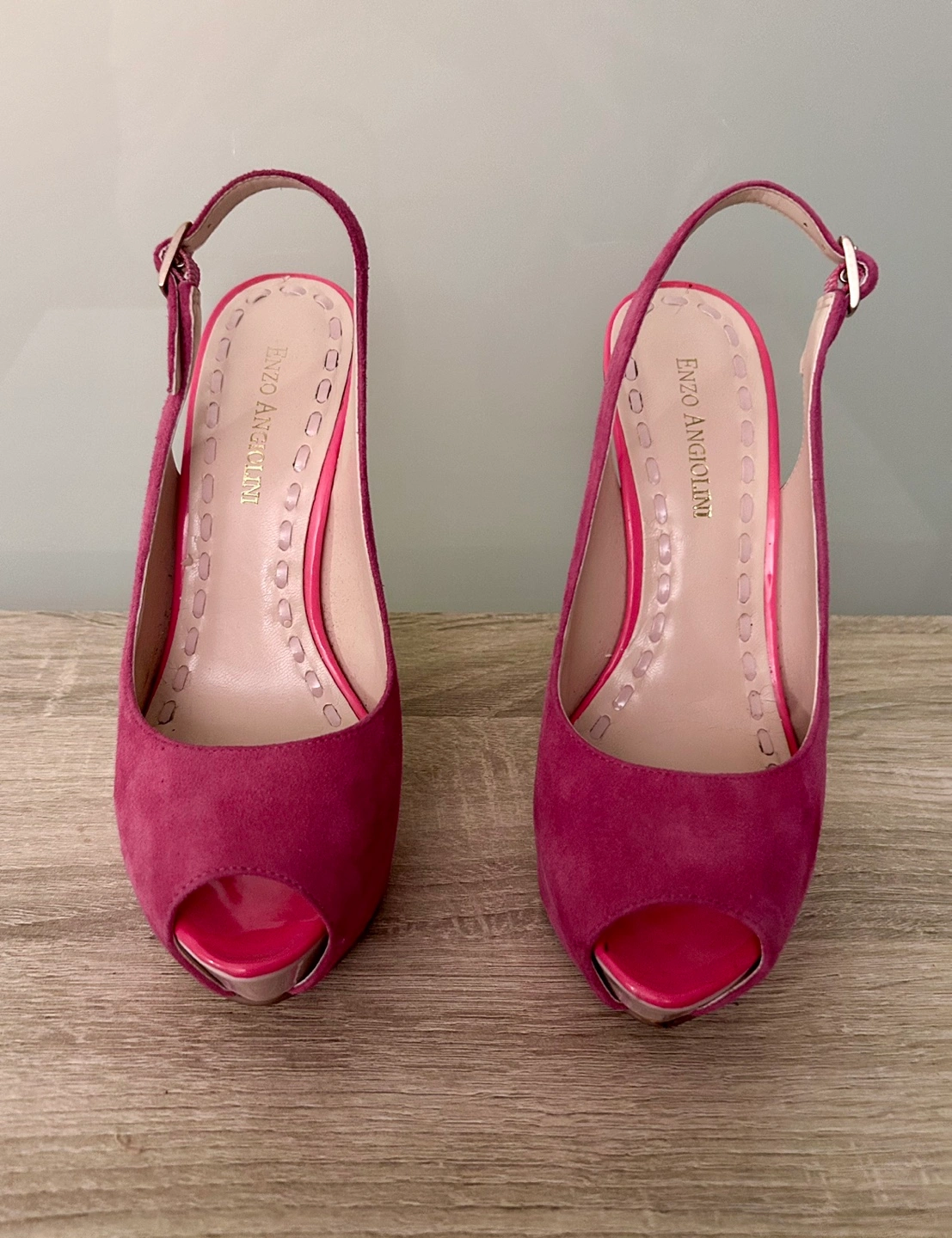 Designer Enzo Angiolini Pink Suede Platform Slingback Heels π