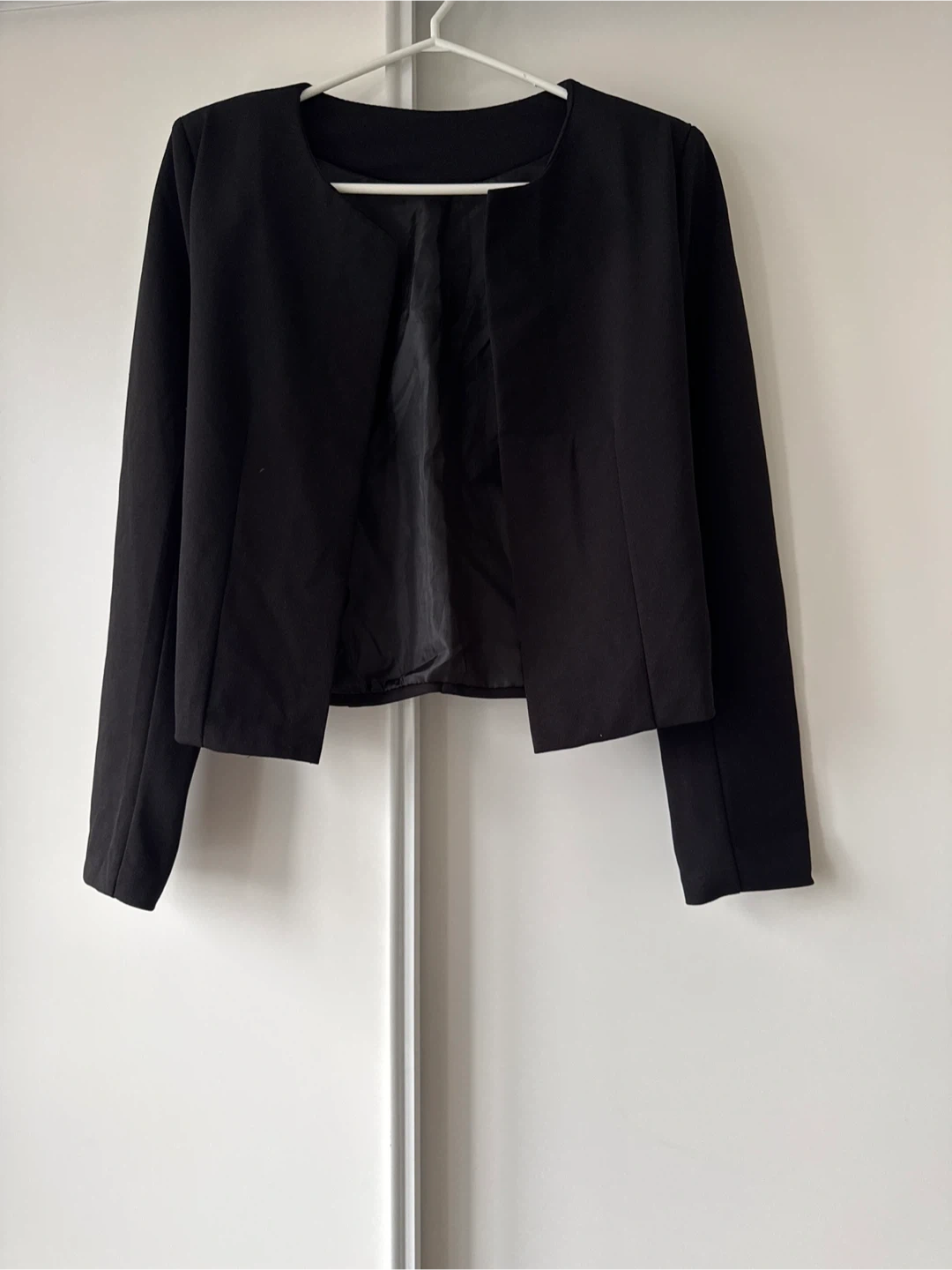 Selling a cute black cropped blazer! It's a size small and in great condition. Perfect for layering or dressing up an outfit