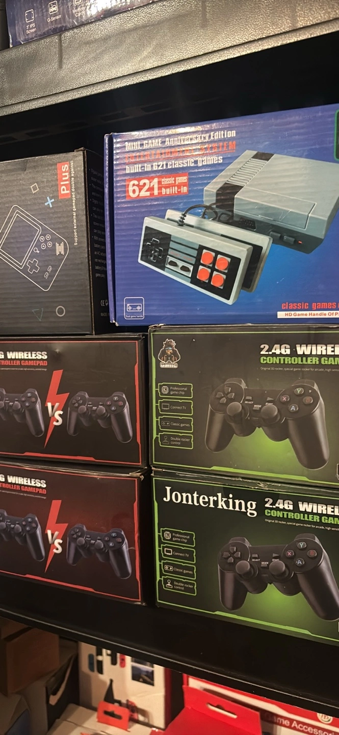 Nexigo brand Switch controller. Enhanced Joypad with Bluetooth wireless connection. 2500 classic games, HDMI wireless plug and another starting from $20-$50 of depend where you’re looking for.