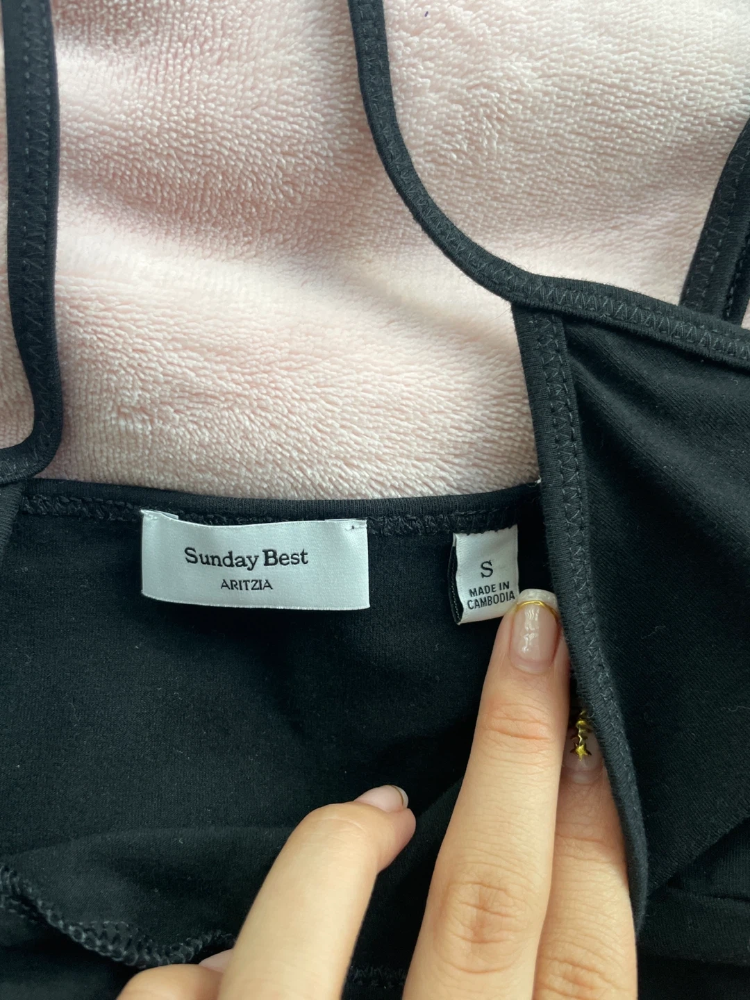 Selling a cute Aritzia Sunday Best tank top in black! It's a size small and made of 95% cotton and 5% elastane. Perfect for layering or wearing on its own!