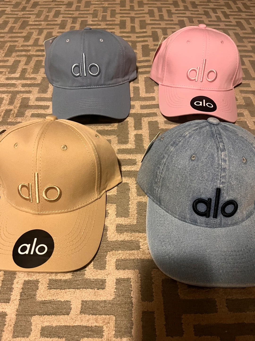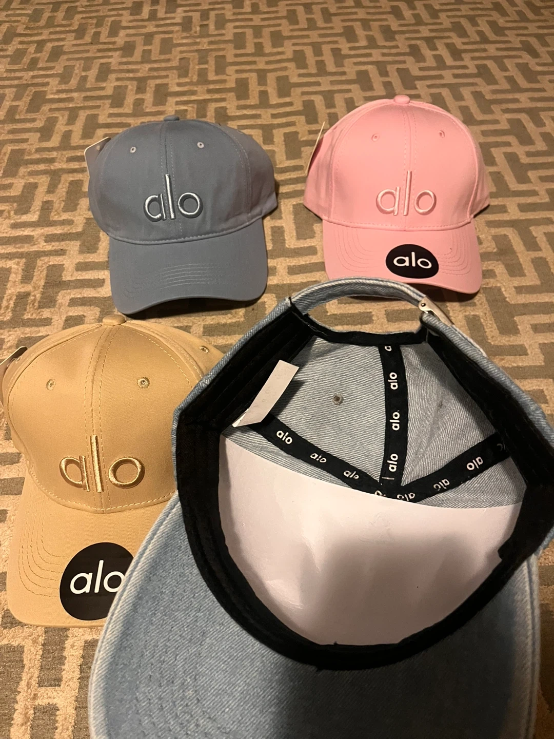 I'm selling these Alo Yoga hats, and they are brand new with tags! Available in assorted colours, including blue, pink, beige, and denim. Perfect for adding a stylish touch to any outfit! 40 Each