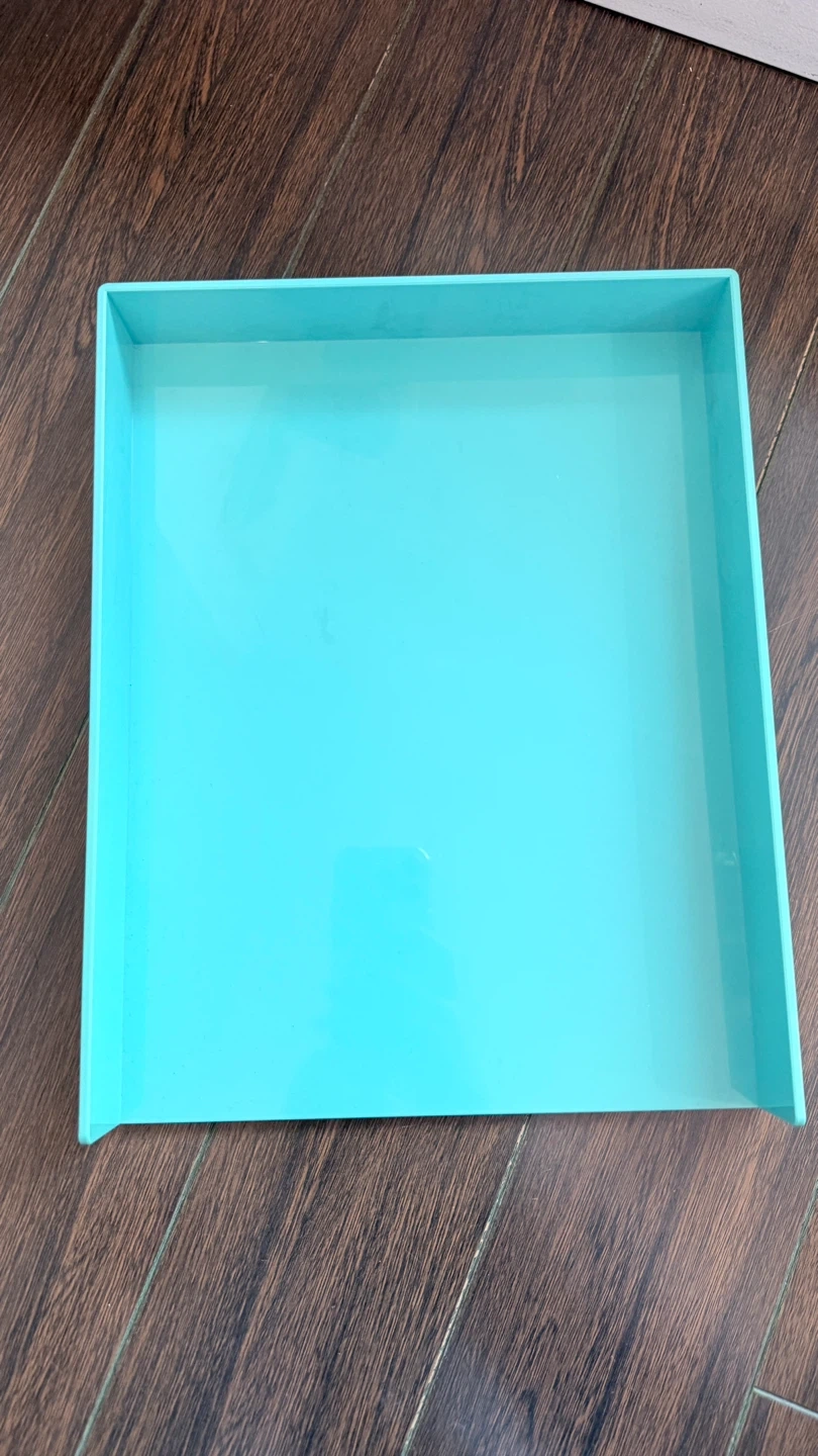 Set of two stackable desk trays. One white and one teal. Plastic material. Keep your workspace tidy! $5 each