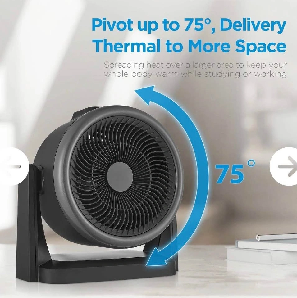 This is a new Midea 2 in 1 Turbo Heater + Fan. It offers year-round comfort with 4 digital settings: 2 heating settings (High Heat 1500W, Low Warm 600W) and 2 cooling fan speeds. Features a digital thermostat, manual tilt adjustment (0-75 degrees), vortex airflow for circulation, and easy-to-use digital controls. It's lightweight with a stay-cool carry handle and has safety overheat protection. Power settings include High-Heat (1500W Low Fan), Low-Warm (600W Low Fan), High-Fan (432.56 CFM), and Low-Cool (229.52 CFM).