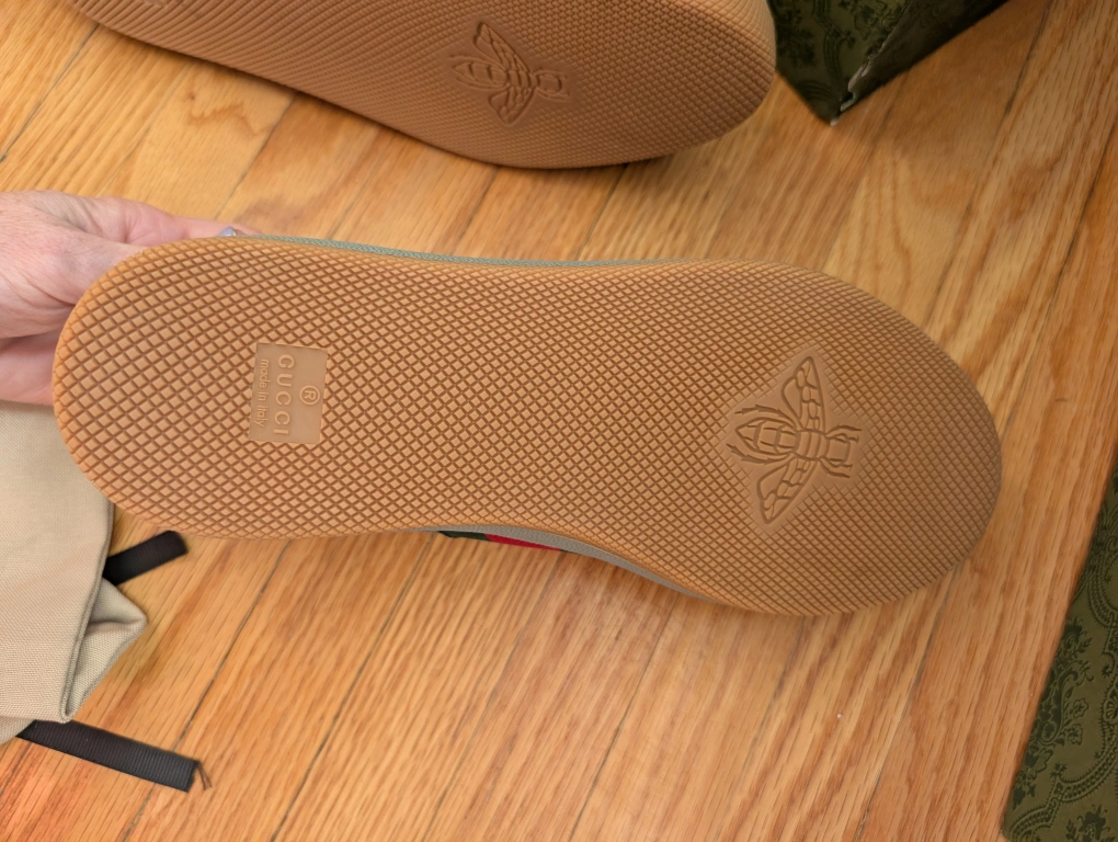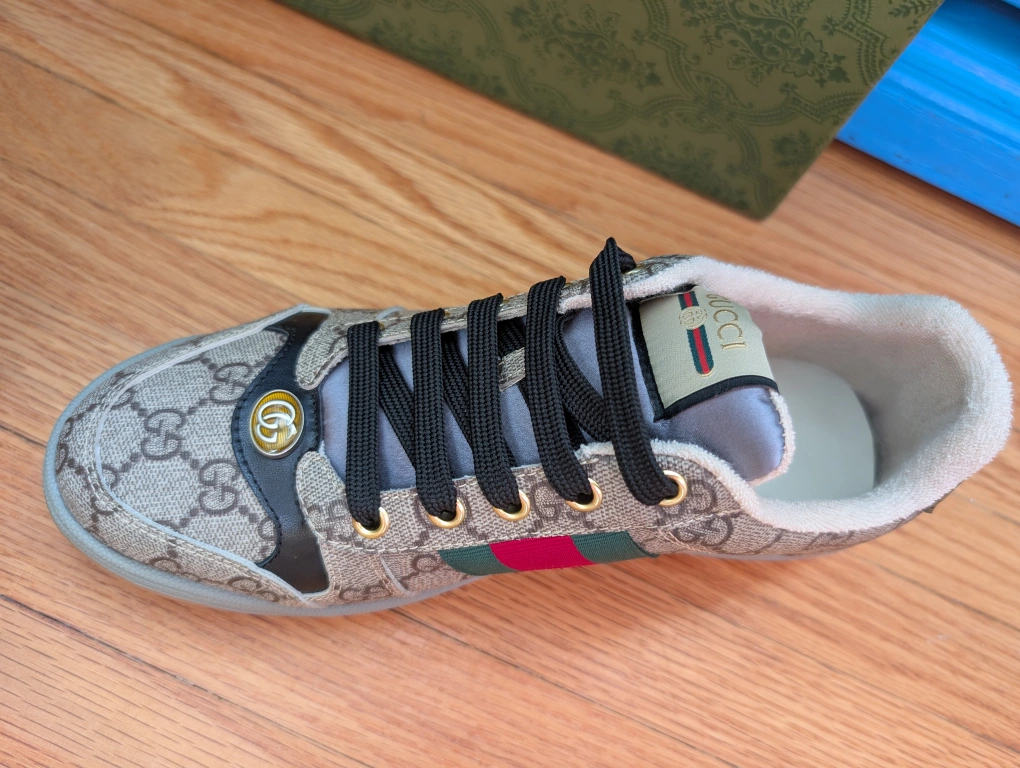 Selling a pair of Gucci screener sneakers with the iconic GG pattern and green/red stripe detailing! They come with the original box and dust bag.