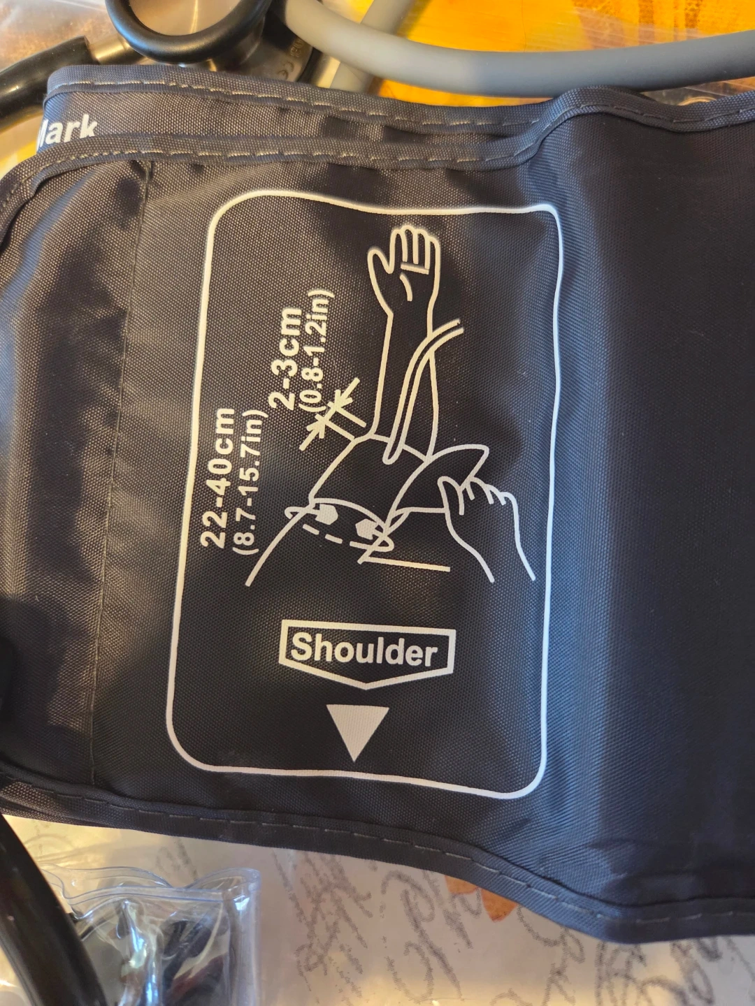 The cuff's size is 22-40cm (8.7-15.7in). It comes with extra ear tips. A great set for medical students or professionals! good for support worker or practical nursing. Watch needs new battery.