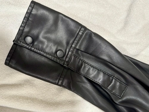 ZARA Black Faux Leather Button Front Shirt Dress Long Sleeve M