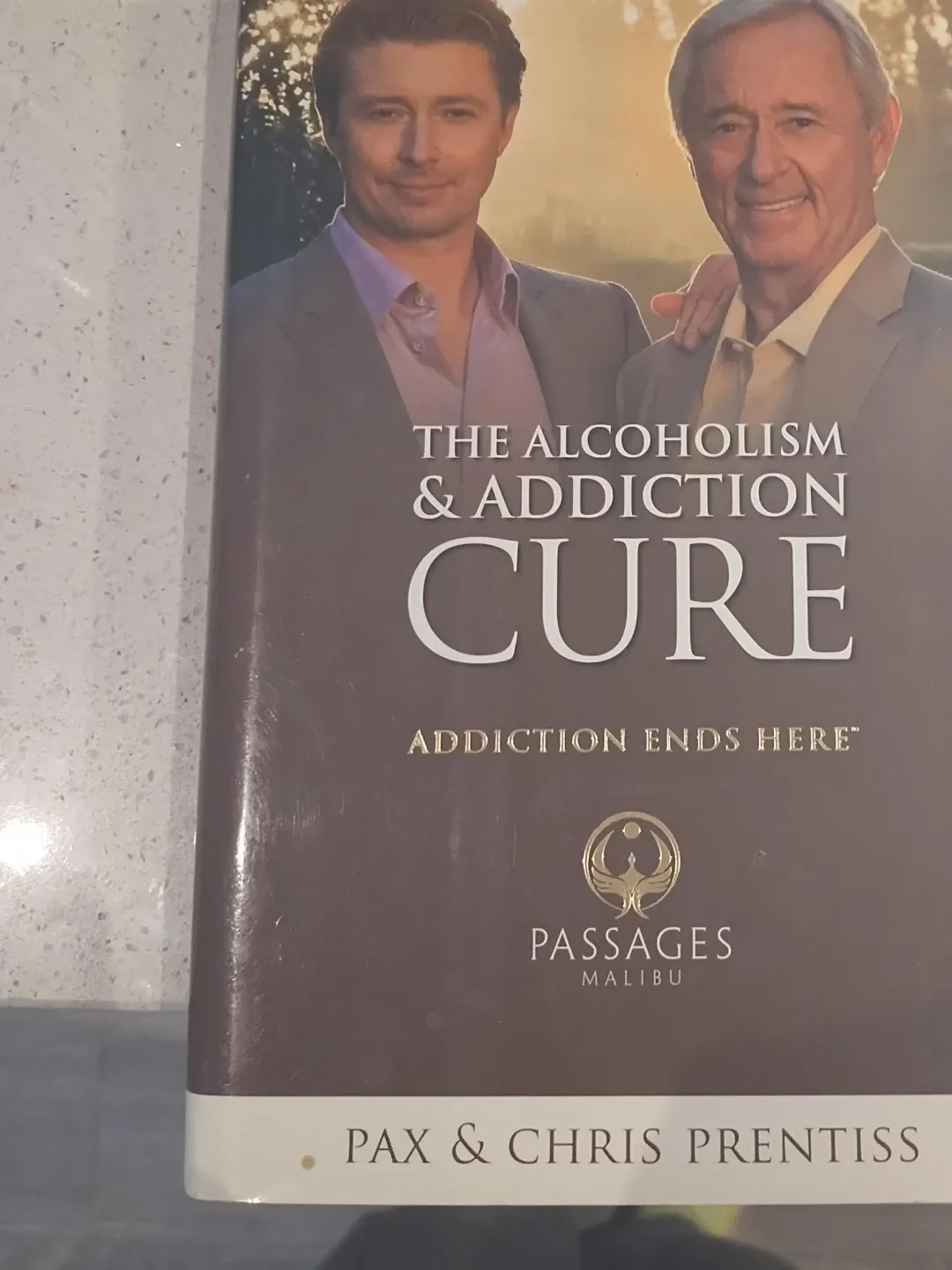This book is "The Alcoholism & Addiction Cure" by Pax & Chris Prentiss. It covers addiction and its potential cures. It's published by Passages Malibu.
