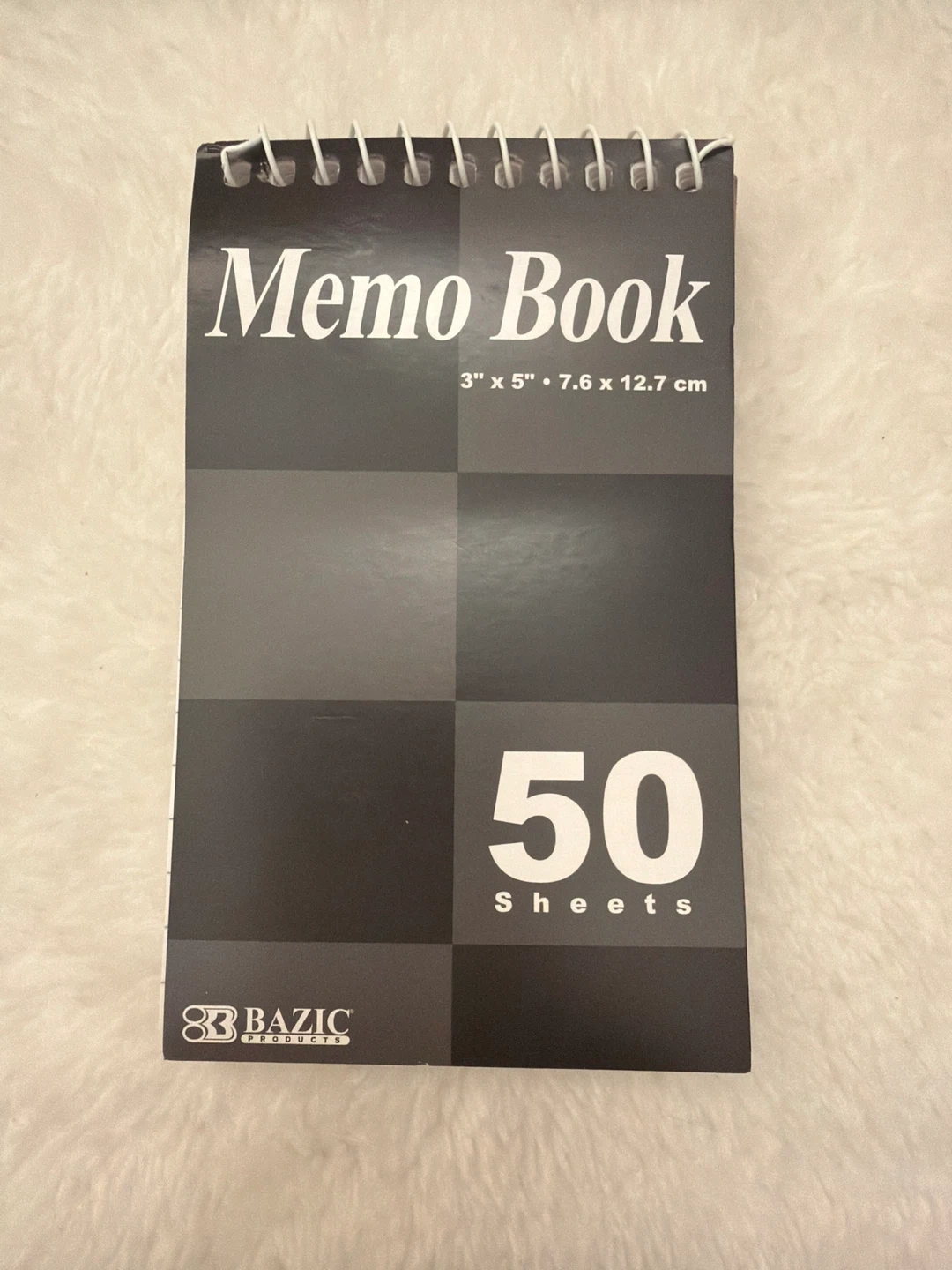 This BAZIC memo book is 3" x 5" and contains 50 sheets. It's spiral-bound for easy page turning. This compact notebook is handy for jotting down quick notes.