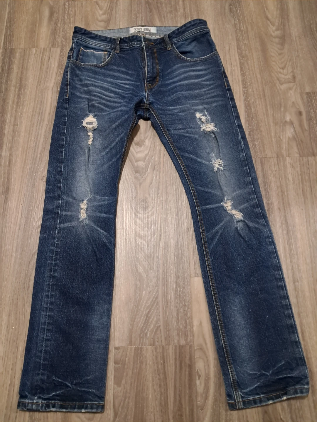 Selling a pair of District Denim jeans! They have a cool, distressed look with some rips and fading. They're in great condition and ready for a new home.