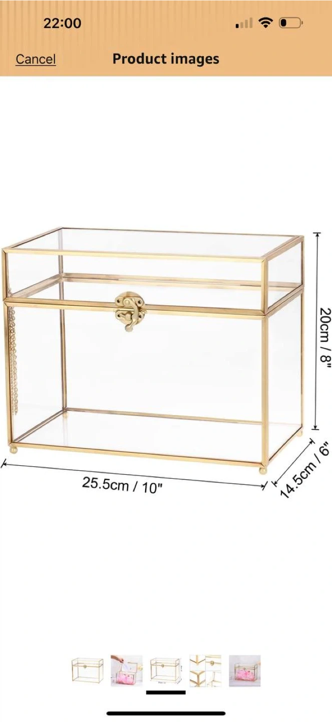 Uxcell Glass Wedding Card Box with Lock – Gold – NEW – $40