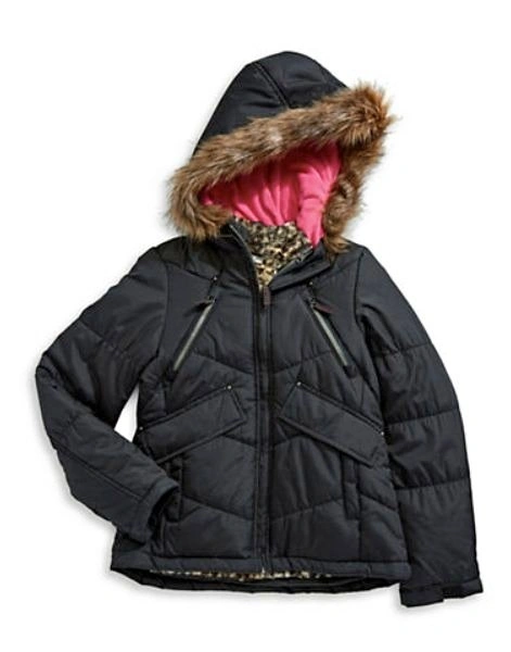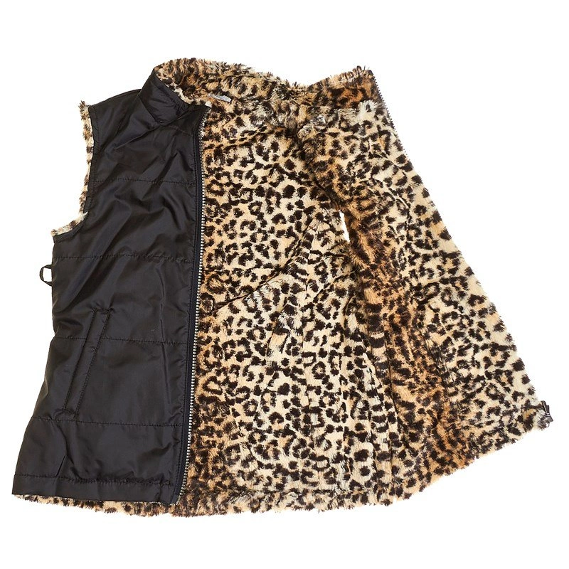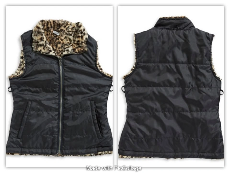 * Removable reversible zip-up vest (vest can be worn as black or faux fur leopard print and has pockets)
