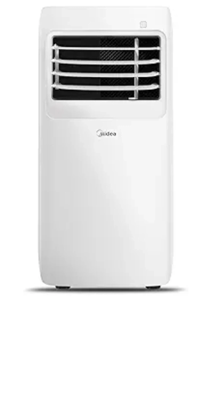 This is a Midea portable air conditioner. It's white and has adjustable vents. One of the flaps needs to be adjust.